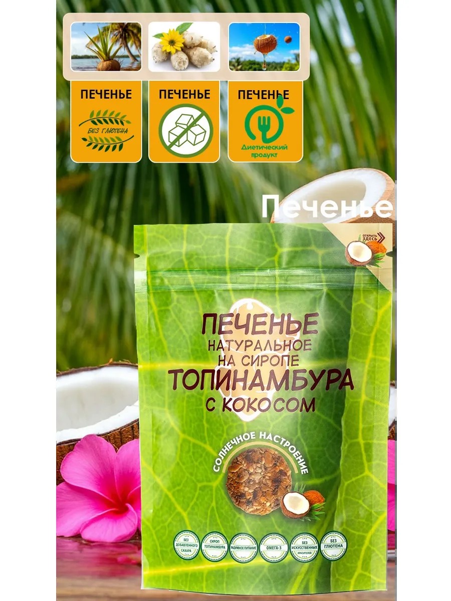 Печенье злаковое с кокосом без сахара на сиропе топинамбура "Солнечное настроение" 120г