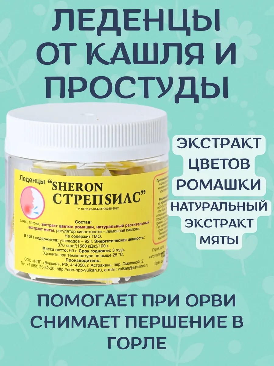 Леденцы Sheron Стрепsилс — это натуральный продукт для эффективного ухода за вашим горлом. Они помогают справиться с болью, сухостью и першением, обеспечивая мягкое и быстрое действие. Леденцы созданы на основе растительных компонентов и идеально подходят для ежедневного использования.