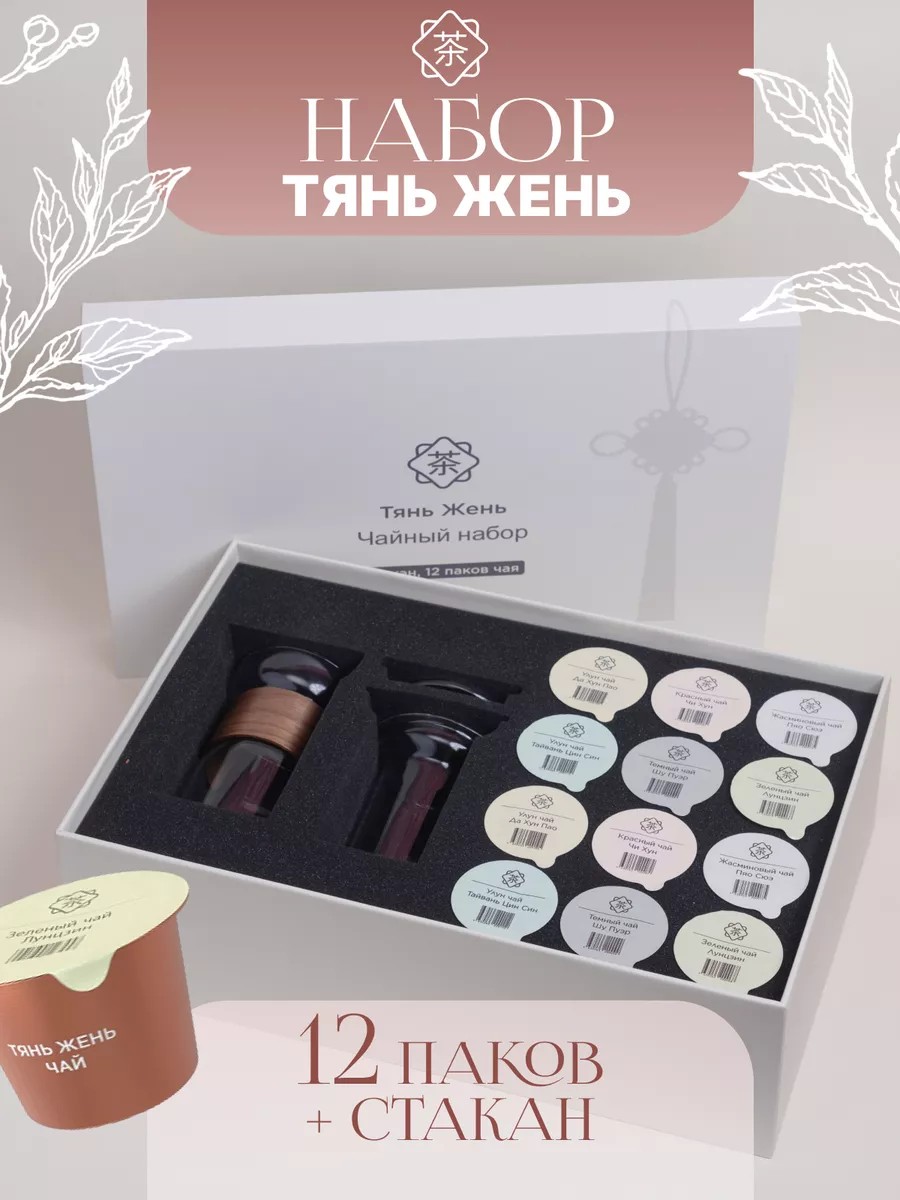 ООО Тянь Жень Подарочный набор чая Стакан + 12 паков "Ассорти "