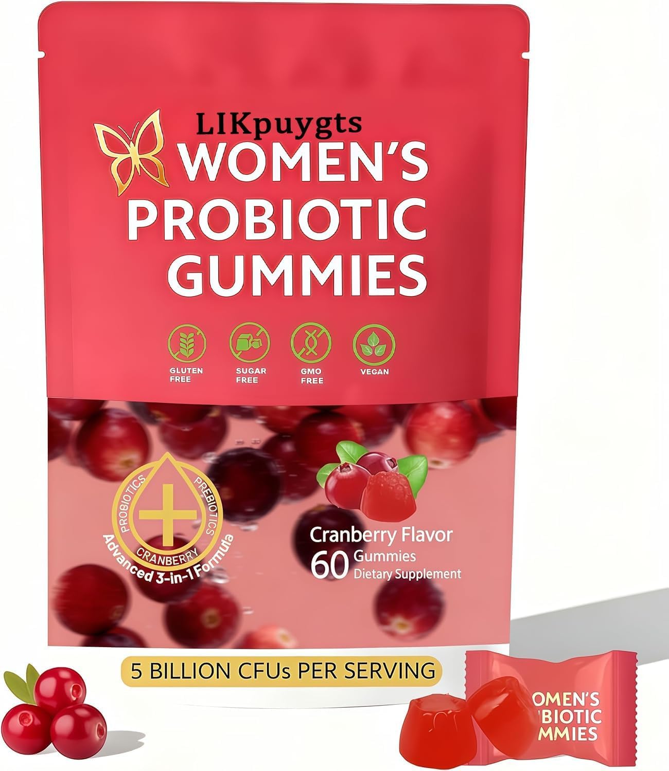 Llkpuygts Prebiotic Nutritional Supplements Probiotic Gummies for Women-Women Exclusive pH Balanced probiotics-Controlling Off Flavors -Enriched with 5 Billion CFUs of Active Bacteria(60)
