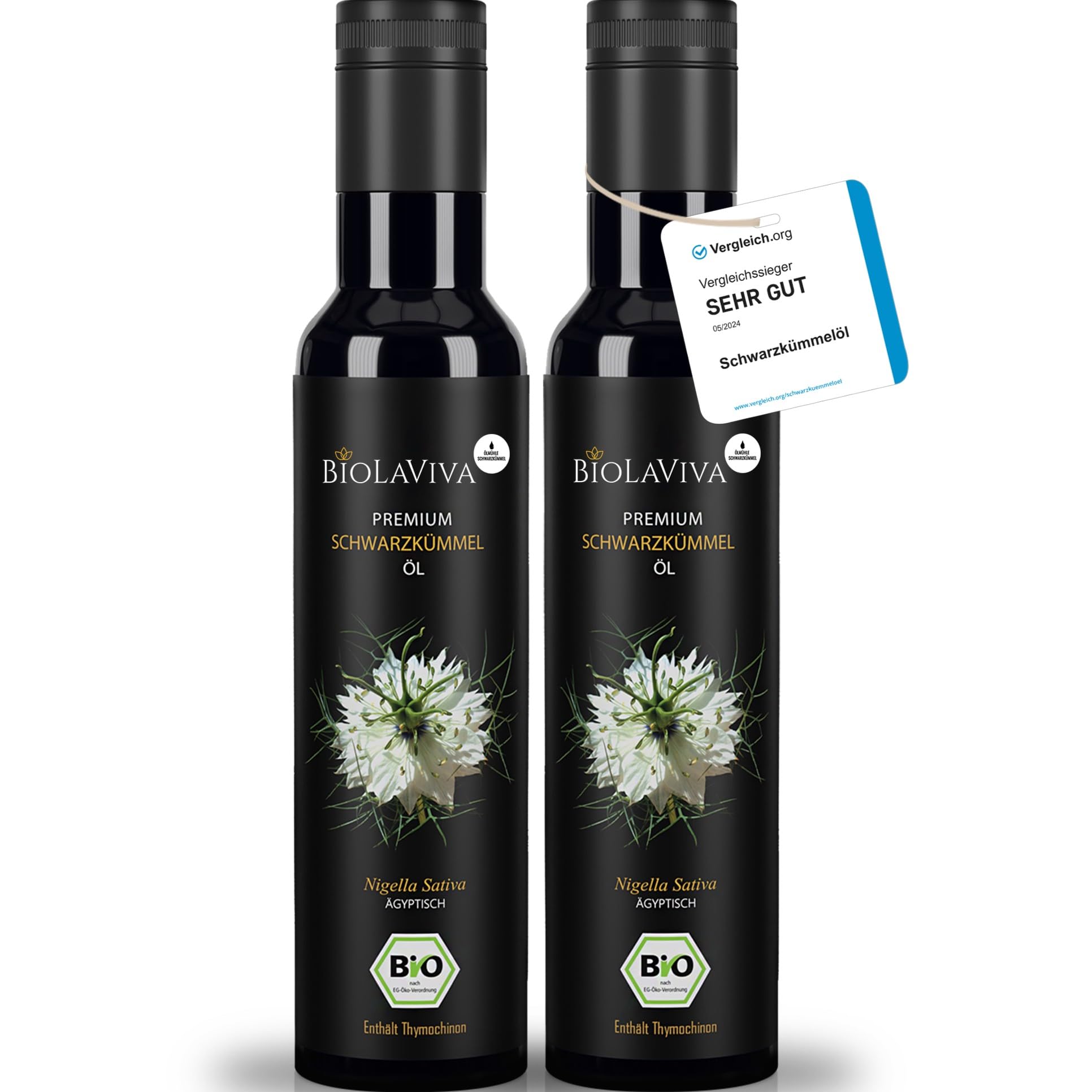 Huile de nigelle bio - 1er Pressage – 100 pressé à froid – 100 égyptien – Naturel – Bouteille de protection contre la lumière en verre violet Miron – Fraîcheur moulin – Lot de 2 bouteilles