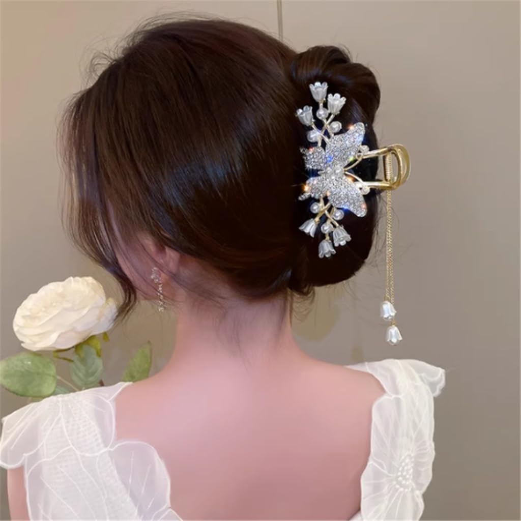 LNYHLXS Suzuran flower tassel hair clips back of scrunchies female large shark clip headwear 1 count (Pack of 1) D