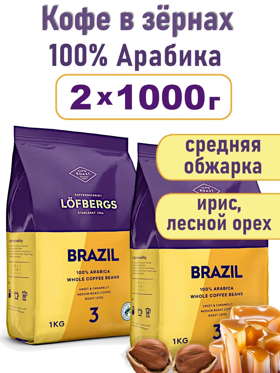 LOFBERGS Кофе в зернах арабика BRAZIL, 2х1кг