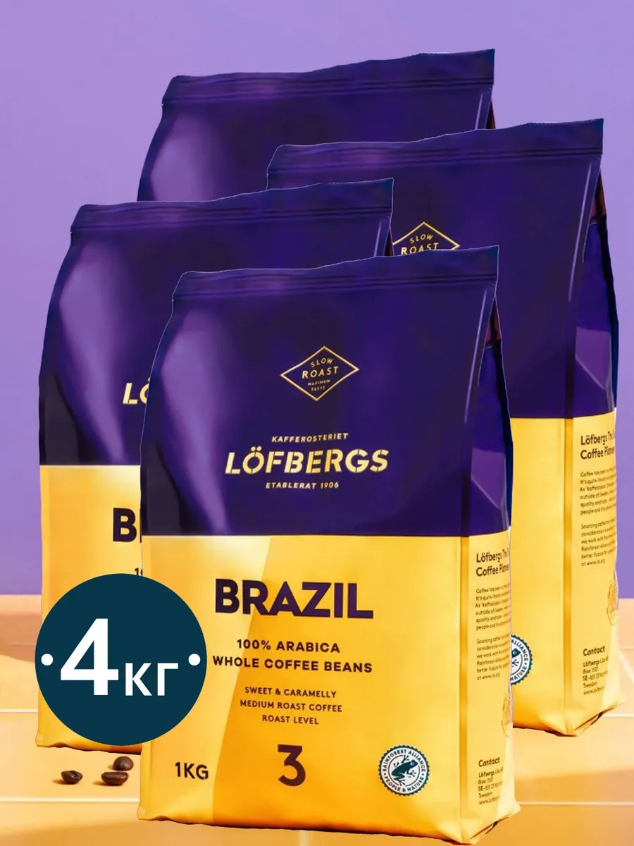 LOFBERGS Кофе в зернах Ловбергс Brazil 4уп. по 1кг