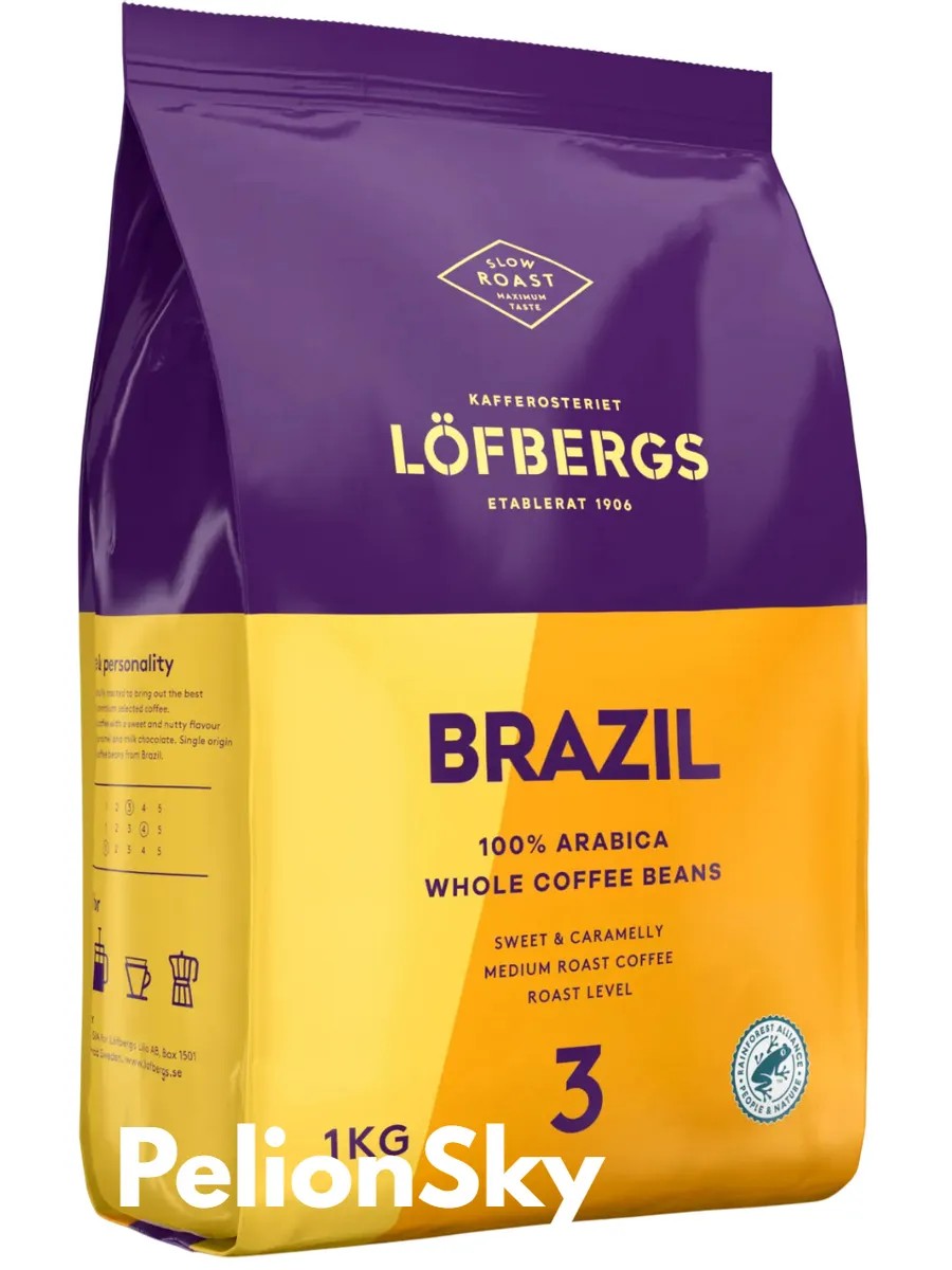 Lofbergs Brazil 1kg coffee beans are a high-quality Arabica, ideal for coffee lovers with a moderate flavor intensity.