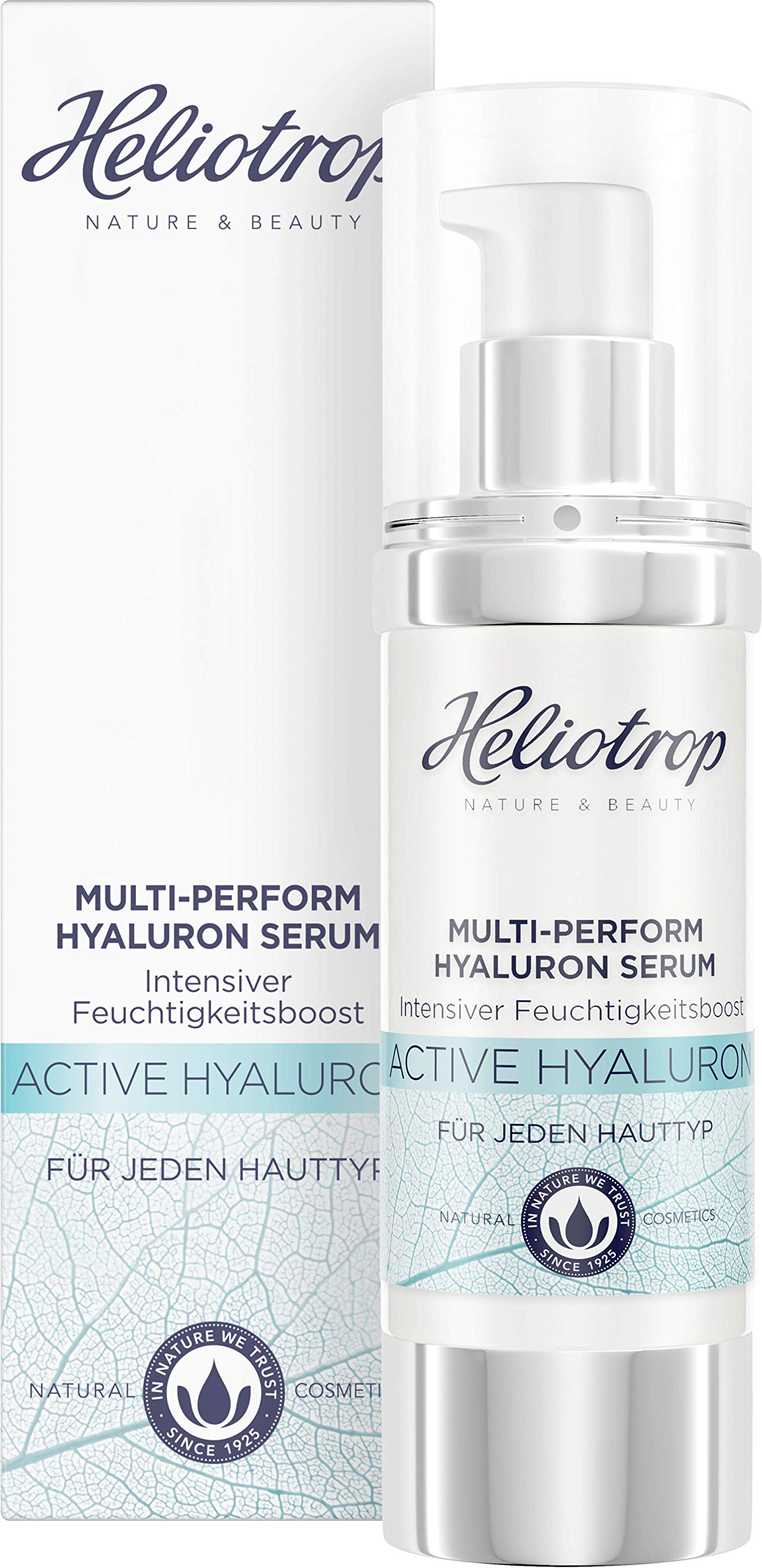 The highly effective Multiperform hyaluronic serum from Heliotrop hydrates intensively and prevents loss of elasticity of the skin. With its soft-melting texture, it is quickly absorbed and is not greasy. The vitalizing formula with an active ingredient complex of multi-effect hyaluronic acid of natural origin and organic pomegranate seed extract improves the skin's moisture balance and gives a firmer and more even skin.Contents: 1 x Heliotrop natural cosmetics Active Hyaluron multi-performance hyaluron serum, contents: 30 ml, made in Germany, environmentally friendly, climate-neutral packaging. NATRUE certified natural cosmetics, vegan formula with natural multi-effect hyaluron of plant origin and organic pomegranate seed extract, compatibility dermatologically tested. Daily use: Apply to face, neck and décolleté in the morning and evening after cleansing the face, leave on briefly for day or night care. Result: softening wrinkles and noticeably soothing, vitalized skin, firmer and more even skin appearance, preventive effect against loss of tension. Intensively hydrating hyaluronic serum with anti-aging effect for an improved moisture balance of the skin, especially suitable for dry skin.Heliotrop Anti-aging gezichtsserum voor droge huid, veganistische natuurlijke cosmetica, gezichtsverzorging met natuurlijk hyaluronzuur, intensieve vochtboost, multi-perform serum, Active Hyaluronon, Het zeer effectieve Multiperform hyaluronserum van Heliotroop hydrateert intensief en voorkomt spankrachtverlies van de huid. Met zijn zacht smeltende textuur trekt het snel in en is het niet vet. De vitaliserende formule met een complex van werkzame stoffen van multi-effect hyaluronzuur van natuurlijke oorsprong en biologisch granaatappelzaadextract verbetert de vochtbalans van de huid en geeft een strakkere en gelijkmatige huid.Inhoud: 1 x Heliotrop natuurlijke cosmetica Active Hyaluron multi-perform hyaluronserum, inhoud: 30 ml, gemaakt in Duitsland, milieuvriendelijke, klimaatneutrale verpakking. NATRUE gecertificeerde natuurlijke cosmetica, veganistische formule met natuurlijk multi-effect hyaluron van plantaardige oorsprong en biologisch granaatappelzaad-extract, compatibiliteit dermatologisch getest. Dagelijks gebruik: 's ochtends en' s avonds na het reinigen van het gezicht aanbrengen op gezicht, hals en decolleté, kort laten inwerken voor dag- of nachtverzorging. Resultaat: verzachtende rimpels en merkbaar rustgevende, vitaliseerde huid, strakker en gelijkmatiger huidbeeld, preventieve werking tegen spanningsverlies. Intensief hydraterend hyaluronserum met anti-aging effect voor een verbeterde vochtbalans van de huid, speciaal geschikt voor droge huid.