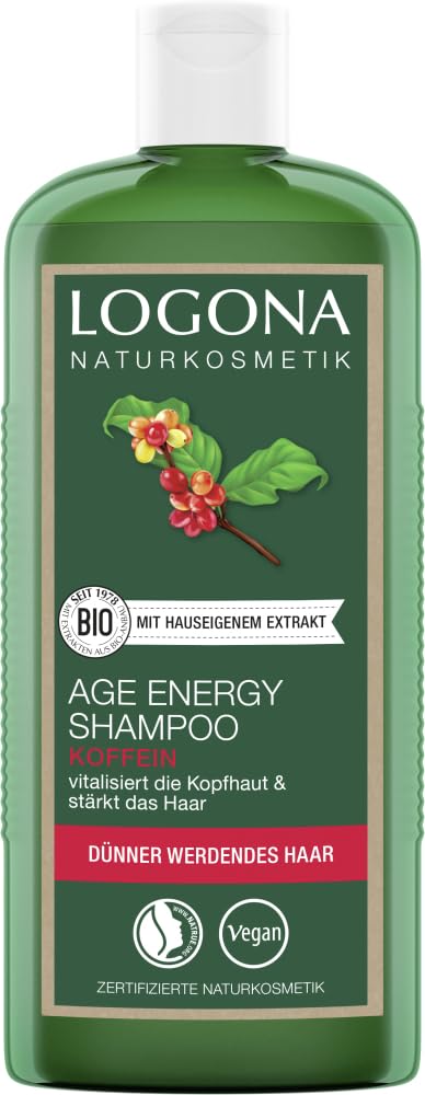 Treatment: Logona Age Energy shampoo with organic caffeine is specially formulated to meet the needs of fine, weak hair. Certified by enNATRUE INGREDIENTS Aqua (Water), Alcohol Denat. , Coco-Glucoside, Glycerin, Disodium Cocoyl Glutamate, Sodium Cocoyl Glutamate, Aloe Barbadensis Leaf Juice , Caffeine , Inulin, Betaine, Sucrose Laurate, Sodium PCA, Glyceryl Oleate, Silica, Arginine, Arctium Lappa Seed Oil , Bama Vulgaris Leaf. Granatum Seed Extract , Ginkgo Biloba Leaf Extract, Bama Vulgaris Sap Extract, Lycium Barbarum Fruit Extract , Xanthan Gum, Phytic Acid, Citric Acid, PCA Ethyl Cocoyl Arginate, Rosmarinus Officinalis (Rosemary) Leaf Extract , Tocopherol, Hydrogenated Palm Glycerin, Citrates, Parfum (Fragrance) , Limonene , Linalool , Citronellol , Geraniol From organic farming Natural essential oils. DIRECTIONS FOR USE Gently massage into wet hair, leave on briefly, and rinse. Recommended for daily use. See moreOrganic certification: Quantity: (2 x 250 ml).Age Energy Shampooing Caféine 2 x 250 mlDESCRIPTION DU PRODUIT DESCRIPTION DU PRODUIT Traitement : le shampooing Logona Age Energy à la caféine bio est spécialement conçu pour répondre aux besoins des cheveux fins et sans force. Certification enNATRUE INGRÉDIENTS Aqua (eau), alcool denat. Coco-Glucoside, Glycerin, Disodium Cocoyl Glutamate, Sodium Cocoyl Glutamate, Aloe Barbadensis Leaf Juice , Caffeine , Inuline, Betaine, Sucrose Laurate, Sodium PCA, Glyceryl Oleate, Silica, Arginine, Arctium Lappa Seed Oil , Bama Vulgaris Leaf. ExtractractracExtrait de granatum Seed Extract , Ginkgo Biloba Leaf Extract, Bama Vulgaris Sap Extract, Lycium Barbarum Fruit Exact , Xanthan Gum, Phytic Acid, Citric Acid, PCA Ethyl Cocoyl Arginate, Rosmarinus Officinalis (Rosemary) Leaf Extract , Tocopherol, Hydrogenated Palm Glyceri. des citrates, parfum (Fragrance) , Limonene , Linalool , Citronnellol , Géraniol Issu de l'agriculture biologique Huiles essentielles naturelles. MODE D'EMPLOI Masser doucement sur cheveux humides, laisser agir brièvement et rincer. Recommandé pour une utilisation quotidienne. Voir plusCertification bio :. Quantité : (2 x 250 ml).
