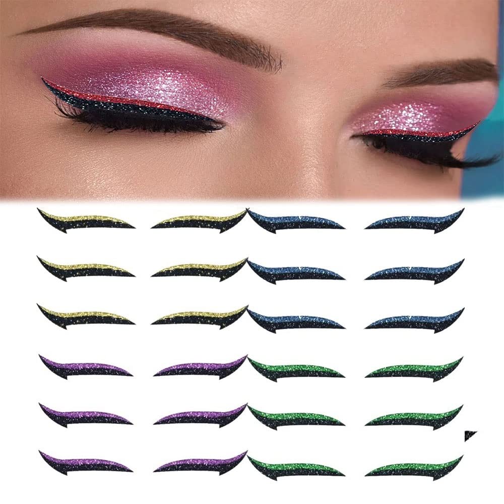 LOKORI 12 paar Stick On Eyeliner Strips Stick On Glitter Eyeliner Stick On Eyeliner Glitter Double Eyelid Tape Eye Line Strip12 pairsf