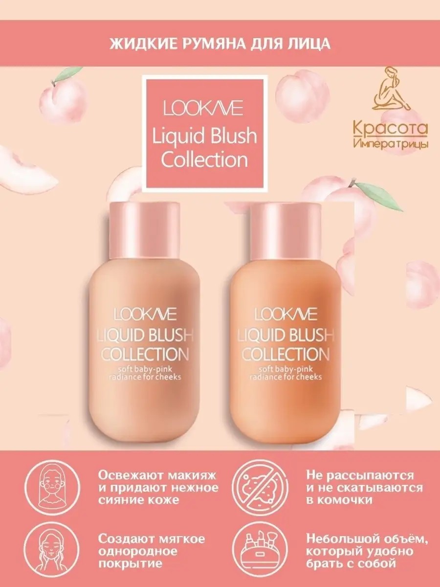 Matte liquid blush in one package - 2 shades, a choice of sets. Waterproof blush applies easily and spreads evenly. The creamy texture can be used as lipstick. The innovative formula is designed to surprise and inspire bright and unique makeup looks. The shades are universal and will suit any girl and woman. The product combines with any foundation and is easy to apply. Just a few drops and your skin will acquire a natural glow that lasts all day. The color intensity can be varied depending on the desired effect - the blush is easy to layer without weighing down or leaving a greasy finish.