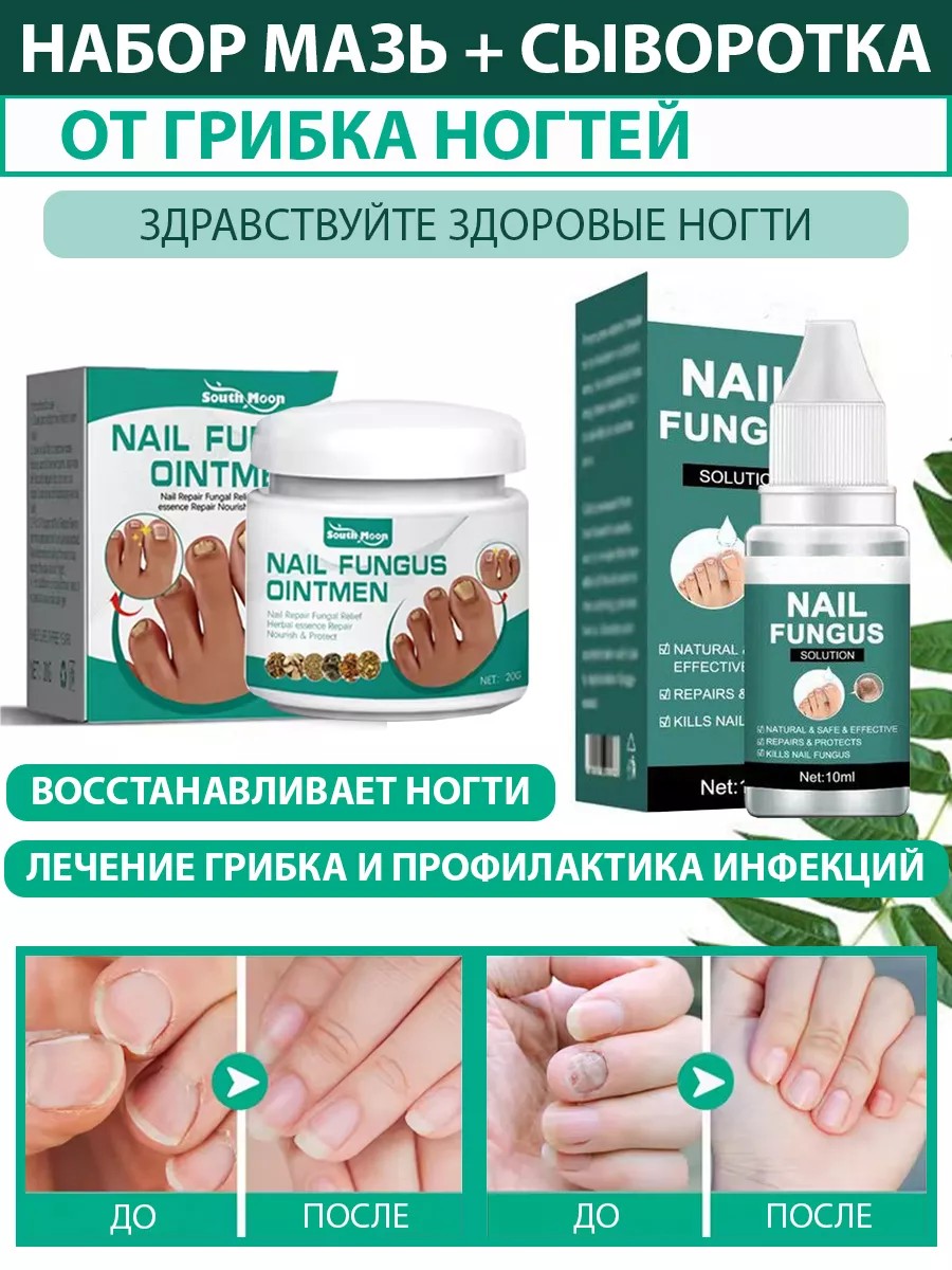 Набор мазь и сыворотка для ногтей от грибка онихолизиса - это комплексный уход профилактика и лечение грибка ногтей на руках и ногах. Мазь и сыворотка для ухода за ногтями обладает мощным комплексом натуральных компонентов, который помогает возвращать ногтям красивый и здоровый вид. Помогают предотвратить инфекцию, избавиться от трещин на ногтях и околоногтевых валиках. Используется как для ногтей, так и кутикулы. Набор для ногтей помогает в лечении и профилактики грибка ногтей, предотвращает его распространение, останавливает развитие грибка, улучшает структуру ногтя, борется с разрушением и отслаиванием его. Противогрибковое средство содержит натуральные экстракты, которые лечат все виды грибка, устраняет деформации, используется для укрепления, восстановления и роста ногтей. Набор для ногтей сыворотка и мазь глубоко увлажняют и питают, увеличивают прочность и эластичность ногтевой пластины, способствуют появлению красивого здорового блеска ногтей. Активные вещества восстанавливающей мази для ног проникают в глубокие слои ногтя и ногтевого ложа, оказывая эффективное обеззараживающее действие и защищает от повторного появления грибка на ногтях. Способ применения: вымойте руки и ноги в теплой воде и вытрите их насухо. Нанесите сыворотку на ногти и область кутикулы втирающими массажными движениями и дать ей впитаться 2-3 минуты. После нанести мазь на ногти и кожу вокруг тонким слоем. Не смывать! Мазь и сыворотку нужно наносить ежедневно на ноготь и в область кутикулы втирающими массажными движениями 2 раза в день.