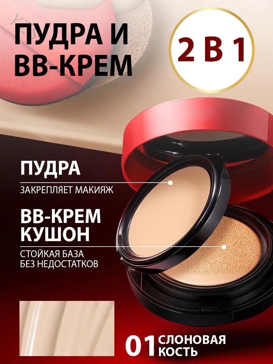 Набор 2 в 1 тональный крем кушон ВВ + пудра YZS для лица (BB-крем) в комплекте с пудрой и зеркалом - подходит для всех типов кожи, увлажняет, питает и матирует кожу лица, идеально скрывает темные круги под глазами, убирает покраснения на лице, пигментацию и другие несовершенства. Тональный крем подстраивается под ваш тон кожи, при этом не пересушивает ее. После нанесения крема кушон на лицо рекомендуется закрепить результат пудрой, для большей стойкости. Мягкая пуховка спонж обеспечивает экономичный расход средств. Крем кушон можно использовать, как консилер. Тональный крем кушон с пудрой для лица отлично выравнивает тон кожи, скрывает несовершенства кожи, поддерживает кожу увлажненной и свежей на протяжении всего дня, смотрится естественно, не создает эффекта маски на лице. Тональный крем кушон с пудрой обеспечивает долговременный уход и увлажнение. Способ применения: нанесите небольшое количество кушона на кожу лица, акцентируя внимание на проблемных зонах. Растушуйте консилер спонжем. Закрепите результат пудрой для стойкости. Набор 2 в 1 отлично подходит для использования каждый день, удобно брать с собой на работу, на отдых.