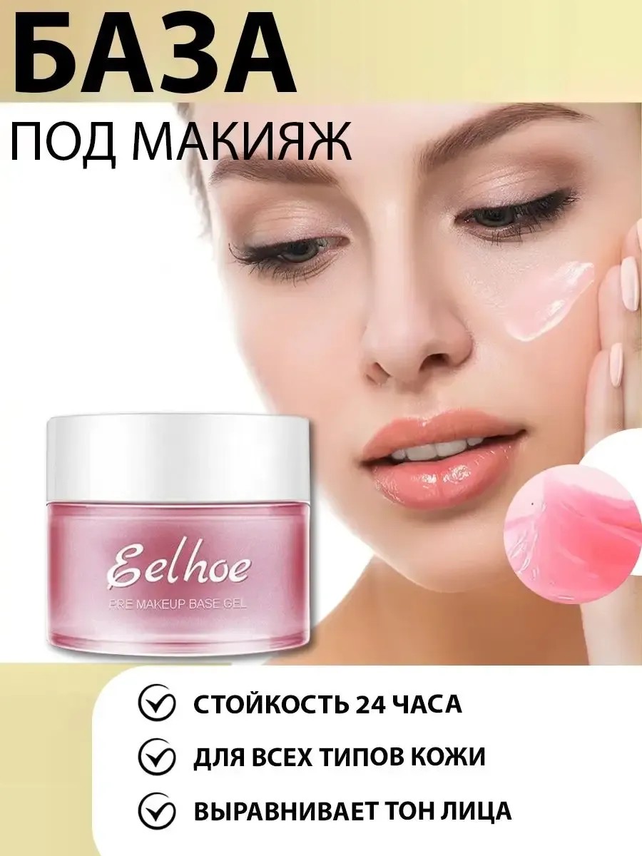 Почувствуйте впечатляющее преображение с уникальной основой-праймером, которая помогает подготовить идеальную поверхность для макияжа и продлевает его стойкость. Праймер для лица от Eelhoe pre makeup base gel создан для идеального выравнивания тона вашей кожи. Гель база помогает подготовить идеальную поверхность для макияжа и продлевает его стойкость. Роскошная ультра гладкая текстура легко распределяется по коже, заполняет видимые морщинки и неровности, визуально совершенствует кожу и создает восхитительное шелковистое покрытие, при этом позволяя коже дышать. Основа-праймер содержит богатый коктейль питательных, увлажняющих, разглаживающих и антивозрастных веществ, которые образуют невесомый ухаживающий слой под макияжем, помогая сохранить совершенство кожи. Идеально сочетается с различными тонирующими средствами, препятствует скатыванию тонального крема, не дает ему собираться в порах и морщинках, позволяет сохранить безупречную свежесть макияжа в течение всего дня. Подойдет как прекрасная база для макияжа, когда надо создать невероятно красивый внешний вид. Профессиональный выравнивающий праймер для женщин позволит создать стойкий макияж на целых 12 часов. Отличная косметическая основа для создания великолепного образа. Уходовое средство глубоко увлажняет кожу, обеспечивает интенсивное увлажнение, благодаря чему подходит даже для сухой кожи. Делает ее упругой, добавляя тонус и оказывая омолаживающий антивозрастной эффект. Текстура приятная, позволит макияжу держаться дольше обычного. Подойдет как основа под дневной и даже ночной макияж.