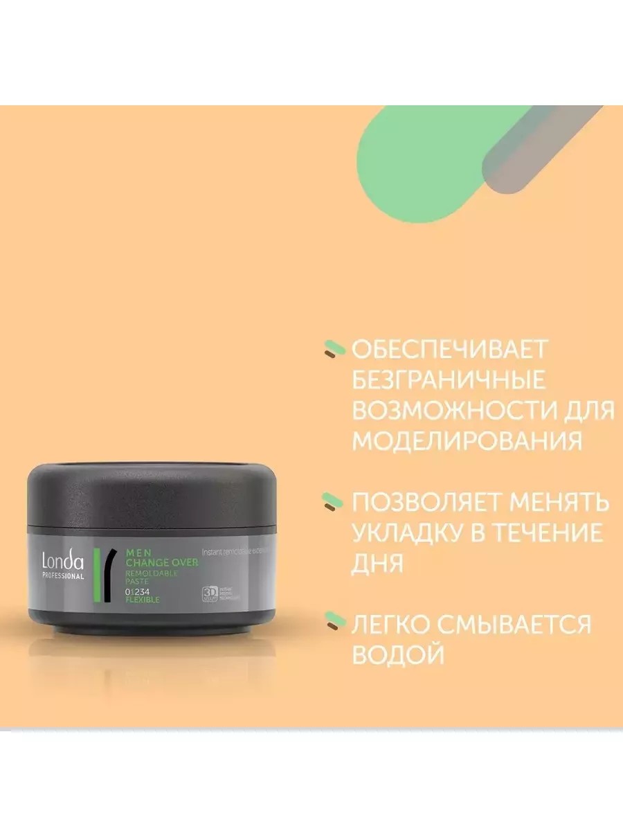 Пластичная паста для волос для мужчин Change Over позволяет мгновенно менять укладку в течение дня. Создает бесконечные вариации моделирования в течение всего дня. Легко и без остатка смывается водой. С микрополимерами 3D-Sculpt.