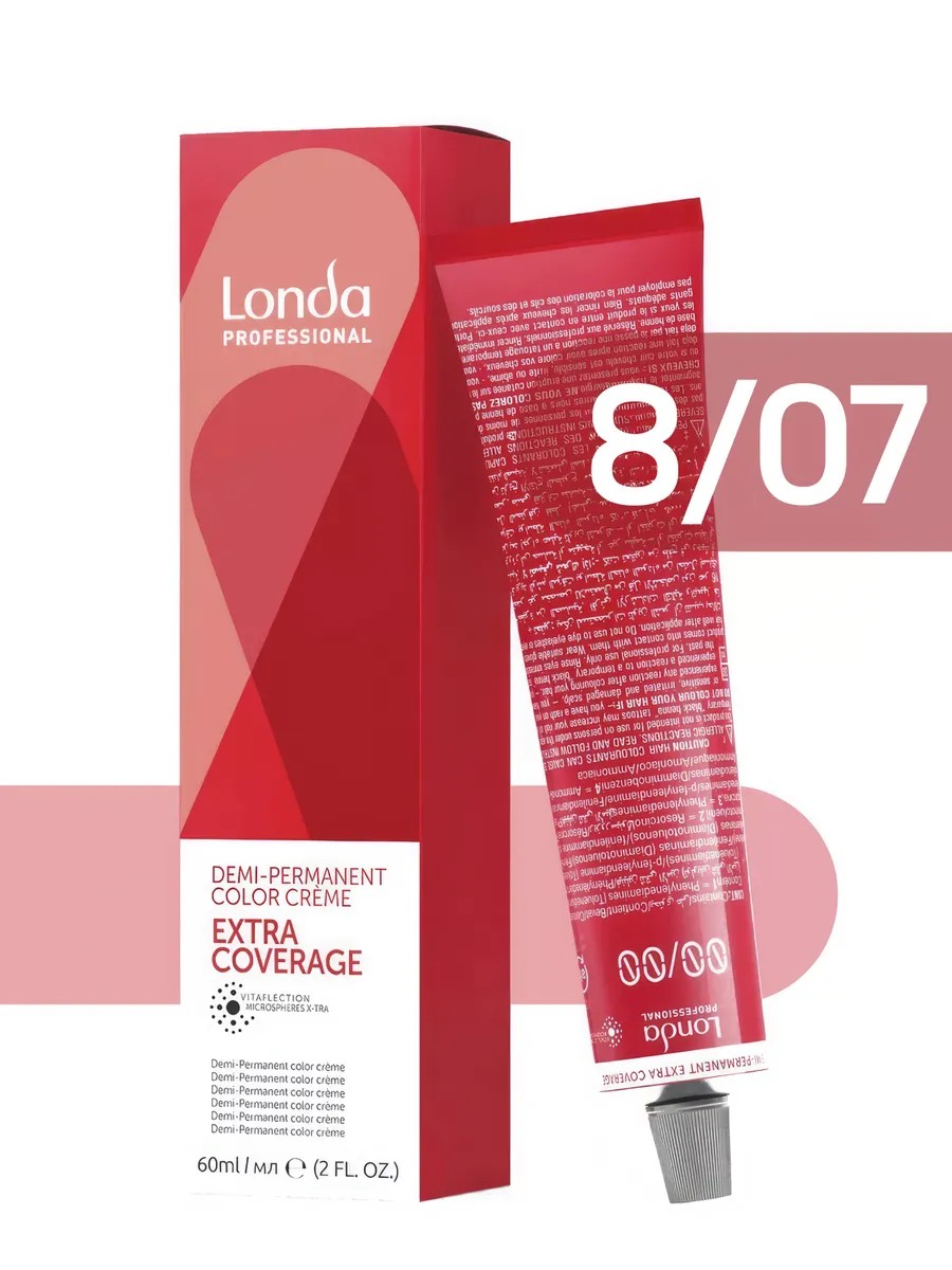 Hair shade 8.07 from Londa. The professional formula provides long-lasting gray coverage and even root coverage. The creamy texture is easy to apply and gentle on hair structure. The formula guarantees long-lasting color without fading. Direct-acting dye allows for a rich, vibrant color while maintaining healthy strands. After coloring, your locks will feel smooth, silky, and soft. This product provides intensive care and a multifaceted color.