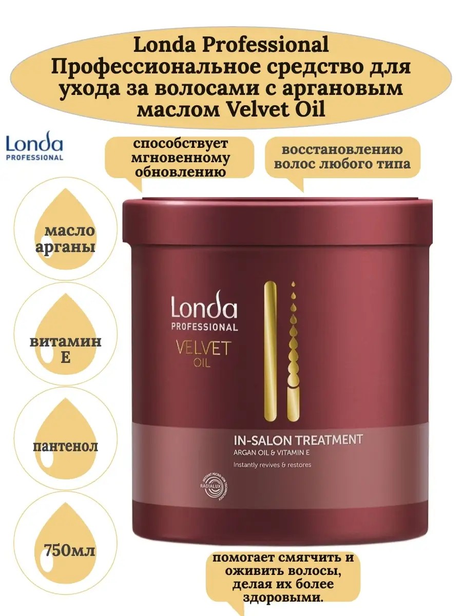 Velvet Oil, a professional hair care product, instantly renews and restores hair of any type. Formulated with argan oil and vitamin E, it gives hair a healthy look and natural shine. It features an exquisite perfume composition. For best results, it is recommended to use with Londa Velvet Oil shampoo, conditioner, and hair oil. Velvet Oil, a professional hair care product (mask), instantly renews and restores hair of any type. It gives hair a healthy look and natural shine. It features an exquisite perfume composition. For best results, it is recommended to use with Velvet Oil shampoo, conditioner, and hair oil. With argan oil and vitamin E. Directions: Apply to damp hair with massaging movements, leave for 5-10 minutes. Rinse thoroughly with water.