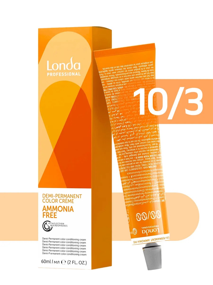 10.3 оттенок с краской без аммиака для волос Лонда. Профессиональная формула обеспечивает стойкое закрашивание седины и равномерное тонирование корней. Безаммиачная кремообразная текстура легко наносится и не повреждает структуру. Состав гарантирует длительный колор без потерей яркости. Краситель прямого действия позволяет достичь насыщенного color оттенка, сохраняя здоровье прядей.
