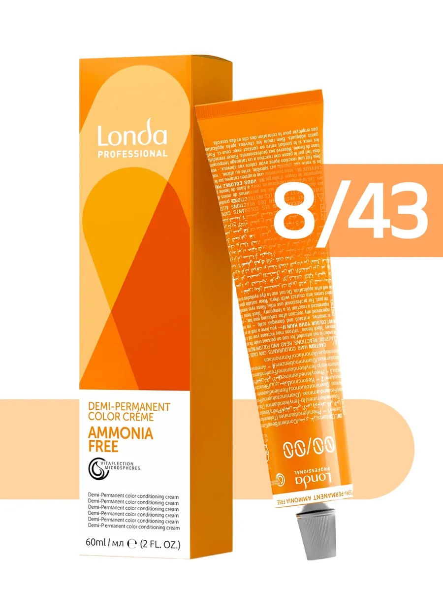 Shade 8.43 with ammonia-free hair dye from Londa. The professional formula provides long-lasting gray coverage and even root coverage. The ammonia-free creamy texture is easy to apply and gentle on the hair structure. The formula guarantees long-lasting color without fading. Direct dye allows you to achieve a rich color while maintaining healthy strands.