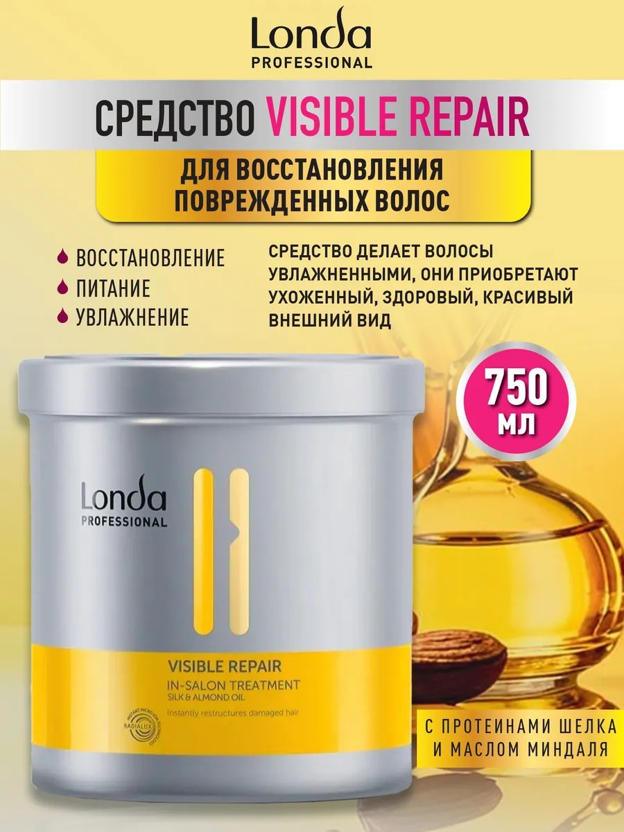 Средство для поврежденных волос Visible Repair эффективно восстанавливает, питает и лечит безжизненные, сухие, ломкие, хрупкие волосы. Формула с содержанием особых микрочастиц - микроинов, помогает реконструировать структуру волоса изнутри. Укрепление также происходит за счет натуральных компонентов, находящихся в составе продукта. Протеины шелка помогают восстановить упругость и эластичность, гидробаланс, предотвращают ломкость. Пантенол обладает питающими и укрепляющими свойствами. Масло сладкого миндаля помогает росту волос, благодаря содержащемуся в нем витамину F. Средство делает волосы увлажненными, они приобретают ухоженный, здоровый, красивый внешний вид. Способ применения нанести на влажные волосы массирующими движениями. Оставить на 5-10 минут для воздействия. Тщательно смыть водой. Способ применения: нанести на влажные волосы массирующими движениями. Оставить на 5-10 минут для воздействия. Тщательно смыть водой.
