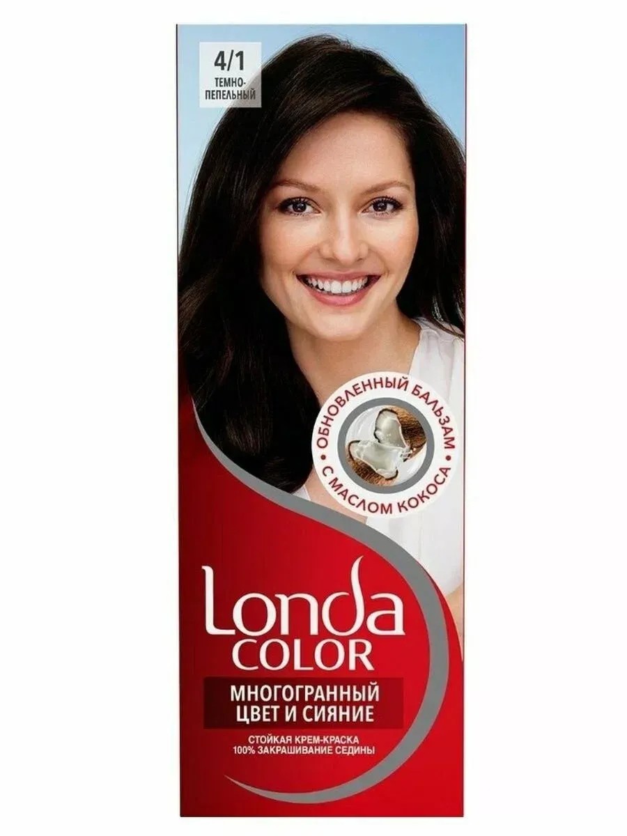 Краска для волос Londacolor 4/1 темно-пепельный интенсивного оттенка, которая сохранит свой цвет до 8 недель.