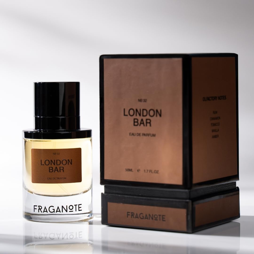 London Bar by Fraganote is a bold and sophisticated men’s fragrance that encapsulates the allure of an evening spent in an elegant London bar. This perfume opens with the spicy warmth of pepper and cinnamon, immediately drawing you into an intoxicating world of smoky rum and rich tobacco. As the fragrance evolves, its heart notes of create a mysterious and luxurious aura, perfect for making a lasting impression. The base notes of smooth vanilla and warm amber round out the composition, giving it a woody, masculine finish that lingers through the night. Whether you're heading out for a special dinner, attending an evening event, or enjoying a date night, London Bar is the perfect fragrance to add a touch of boldness and sophistication to your style. This fragrance is designed for men who appreciate deep, smoky, and boozy notes, offering an olfactory experience that stands out in any crowd.Ideal Gift for Men: This distinctive, men’s perfume makes for an excellent gift for birthdays, anniversaries, or any occasion where you want to impress with a luxurious fragrance. Sophisticated and Masculine Scent: London Bar is crafted for the modern man who appreciates luxury and elegance, offering a unique fragrance that evokes the charm of London's nightlife. Smoky, Boozy, and Spicy Notes: With pepper and cinnamon as top notes, rum and tobacco in the heart, and vanilla and amber at the base, this fragrance delivers a smoky, boozy, and woody experience. Perfect for Night-time Occasions: Ideal for parties, date nights, or dinners, this fragrance adds a bold, unforgettable touch to any evening, making it the go-to scent for men who love to stand out. Bold Fragrance for Men: London Bar combines spiced, and woody amber to create a masculine, sophisticated scent perfect for special evenings and nightlife events.
