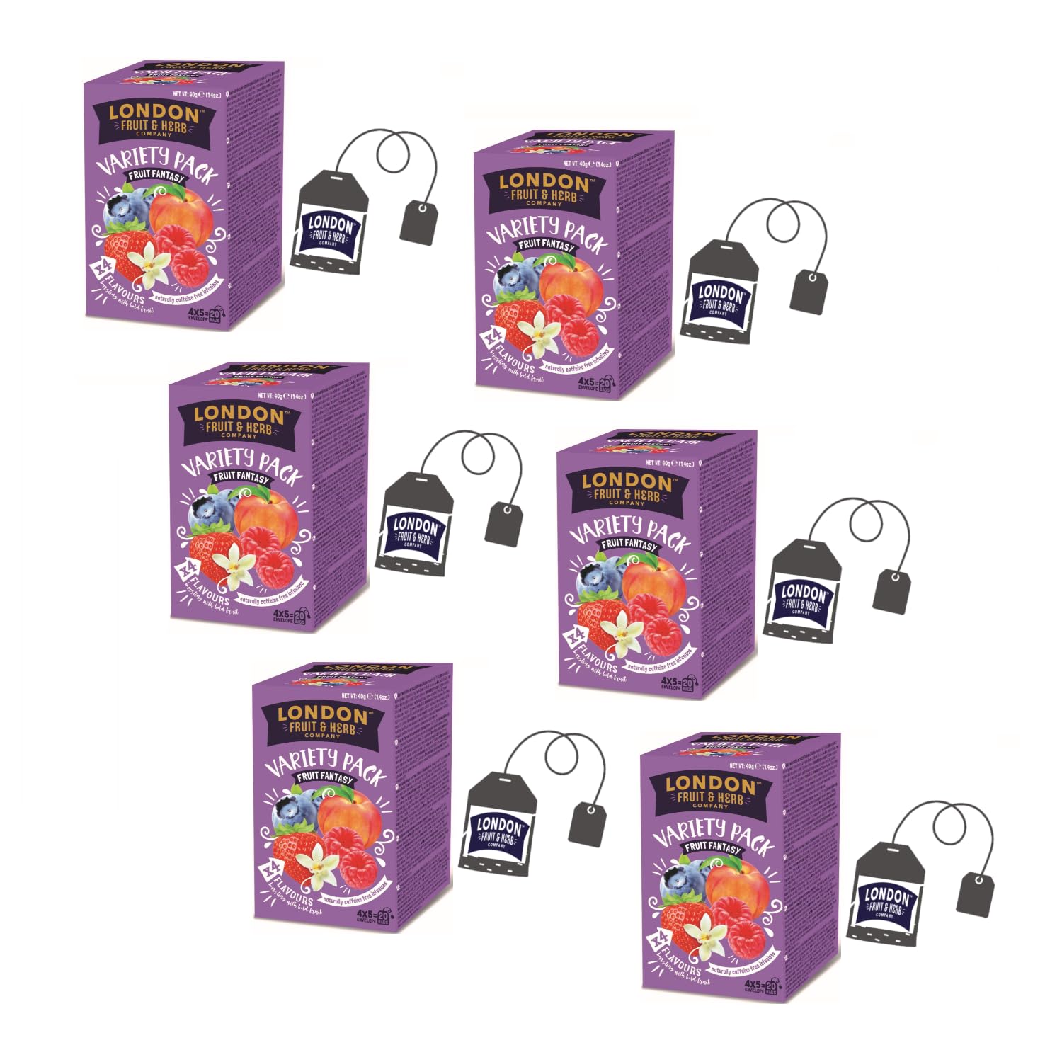 London Fruit Herb Company The Port of London has traditionally been at the heart of sourcing and blending quality herbs and spices it's where our company began as a small pharmacy. Our pride in quality and the experience gained over many years have led us to select inspired flavors based on the finest ingredients. We are so dedicated that we have developed a unique process to bring you a range of teas and infusions that are as delicious as they are fragrant. See for yourself. At London Fruit Herb Company, we use established flavor-locking technologies to create unique and refreshing fruit teas. Variety Pack Fruit Fantasy: Assortment of flavored infusions in 4 fruit flavors (30 x blueberry infusion, 30 x strawberry and vanilla infusion, 30 x peach infusion, 30 x raspberry infusion), naturally caffeine-free. Total: 120 tea bags (240 grams). Made in the UK. [THE BEGINNING] - London Fruit Herb began making its own full-flavored fruit teas and herbal infusions in the early 1970s, and the vibrancy and excitement of that decade continue to inspire the creation of new blends today. [England] - It all started in London when Martin, the founder, first started a small tea business after discovering the best methods for locking in the flavor of fruits and herbal infusions, creating blends rich in taste and aroma. [Ingredients] - For the preparation of its fruity tea and herbal infusion blends, London Fruit Herb uses only the finest ingredients, meticulously crafting the recipes to achieve the best results. [Fruity Infusions] - This pack contains 20 filters divided into 4 different blends: 5 peach infusions, 5 strawberry and vanilla herbal infusions, 5 raspberry herbal infusions, 5 myrtle infusions. INGREDIENTS Blueberry Infusion: Apple pollen, hibiscus, blackberry leaves, acidity regulator (citric acid), licorice root, flavorings, blackcurrant leaves, blueberry pulp 1 , orange peel. Strawberry and Vanilla Infusion: Hibiscus, apple pulp, blackberry leaves, acidity regulators (tartaric acid, citric acid), flavorings 6.5 , licorice root, strawberry pulp 1 , vanilla powder 0.5 . Peach Infusion: Apple pulp, blackberry leaves, hibiscus, flavorings 6 , roasted chicory root, acidity regulators (citric acid, malic acid), peach pieces 1 , lemongrass. Raspberry Infusion: Hibiscus, apple pulp, blackberry leaves, flavorings, acidity regulator: tartaric acid, raspberry pulp 5 . INSTRUCTIONS FOR USE Steep the tea bag in hot water (80-85 C) for 3-5 minutes. Consume immediately after preparation. See moreLondon Fruit Assortiment d'Infusions 4 Saveurs Tisane Framboise, Pêche, Fraise Vanille, Myrtille Infusions De Fruits Sans Caféine - Tot 120 Sachets (240 Gr)DESCRIPTION DU PRODUIT DESCRIPTION DU PRODUIT London Fruit Herb Company Le port de Londres a traditionnellement été au centre de l'approvisionnement et de la fusion d'herbes et d'épices de qualité, c'est là que notre entreprise a commencé comme une petite pharmacie. La fierté de notre qualité et l'expérience acquise au cours de nombreuses années nous ont amené à choisir les saveurs inspirées en fonction des meilleurs ingrédients. Nous sommes ainsi dédiés que nous avons développé un processus unique pour vous offrir une gamme de thé et d'infusions vraiment savoureuses et aussi bonnes que sent. Constatez-le par vous-même. Chez London Fruit Herb Company, nous utilisons des technologies établies qui bloquent la saveur, pour créer des thés fruités uniques et rafraîchissants. Variety Pack Fruit Fantasy: Assortiment d'infusions aromatisées en 4 saveurs aux fruits (30 x infusé à la myrtille, 30 x infusé à la fraise et à la vanille, 30 x infusé à la pêche, 30 x infusé à la framboise), naturellement sans caféine. Tot. 120 sachets de thé (240 grammes). Fabriqué au Royaume-Uni. [L'INIZIO] - London Fruit Herb a commencé à préparer ses propres thés et tisanes aux fruits, au goût plein, au début des années 70 et la vivacité et l'excitation de cette décennie continuent encore aujourd'hui à inspirer la création de nouveaux mélanges. [Angleterre] - Tout a commencé à Londres, lorsque Martin, le fondateur, a commencé pour la première fois une petite activité de thé après avoir découvert les meilleures méthodes pour maintenir bloqué la saveur des fruits et des infusions d'herbes, créant des mélanges riches en goût et en arôme. [Ingrédients] - Pour la préparation des mélanges de thé et de tisanes fruitées mélangés avec des herbes, seuls les meilleurs ingrédients sont utilisés par London Fruit Herb, créant de manière méticuleuse les recettes de manière à obtenir le meilleur résultat. [Infusions fruitées] – Ce paquet contient 20 filtres divisés en 4 mélanges différents : 5 x infusés à la pêche, 5 x tisanes fraise et vanille, 5 x tisanes à la framboise, 5 x infusés au myrt. INGRÉDIENTS Infusé à la myrtille : polon de pomme, hibiscus, feuilles de mûre, correcteur d'acidité (acide citrique), racine de réglisse, arômes, feuilles de cassis, pulpe de myrtille 1 , écorce d'orange. Infusé à la fraise et à la vanille : hibiscus, pulpe de pomme, feuilles de mûre, correcteurs d'acidité (acide tartrique, acide citrique), arômes 6,5 , racine de réglisse, pulpe de fraise 1 , poudre de vanille 0,5 . Infusé à la pêche : pulpe de pomme, feuilles de mûre, hibiscus, arômes 6 , racines de chicorée grillées, correcteurs d'acidité (acide citrique, acide malique), morceaux de pêche 1 , citronnelle. Infusé à la framboise : hibiscus, pulpe de pomme, feuilles de mûre, arômes, régulateur d'acidité : acide tartrique, pulpe de framboise 5 . MODE D'EMPLOI Trempez le sachet dans de l'eau chaude (80-85 C) pendant 3-5 minutes. A consommer immédiatement après la préparation. Voir plus