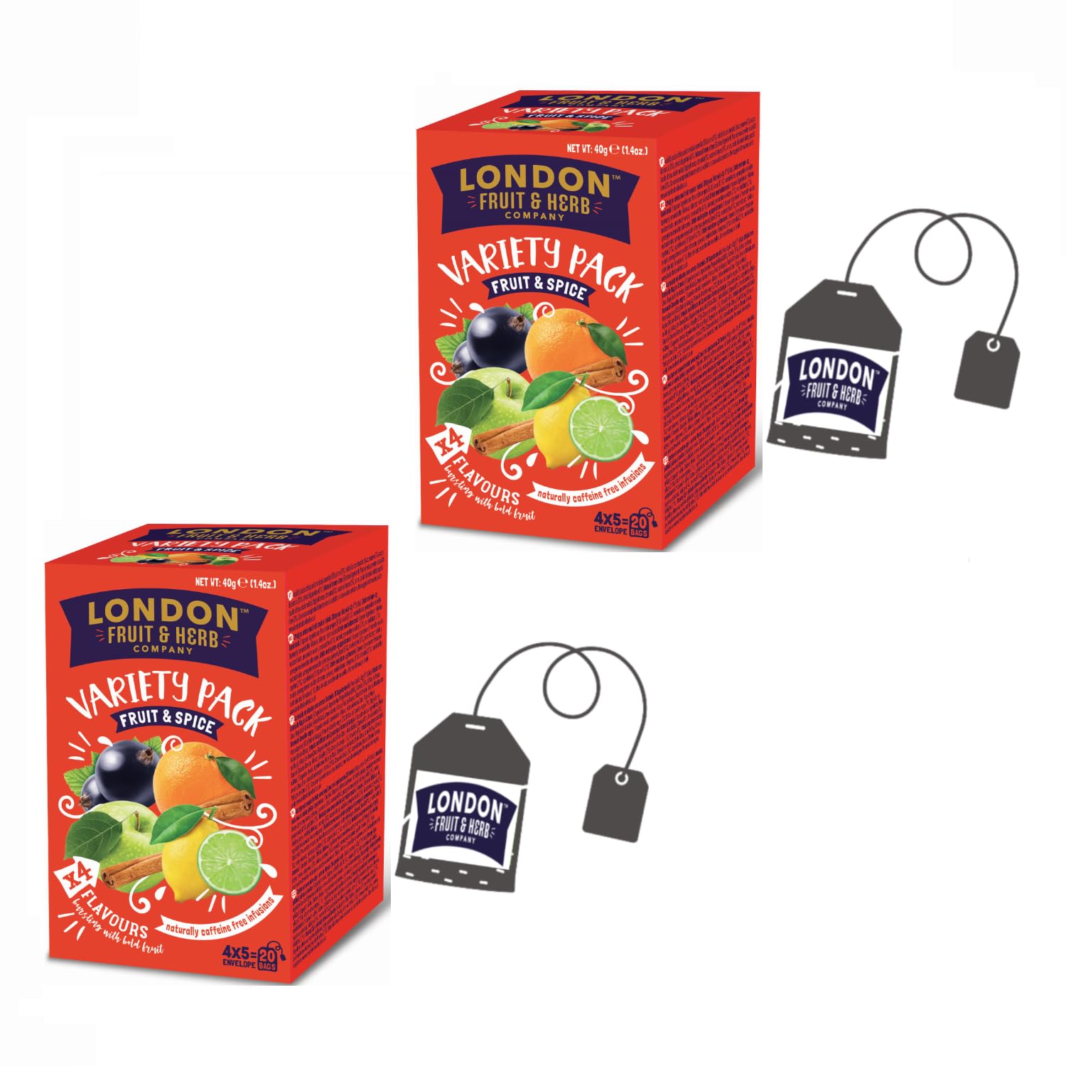 LONDON FRUIT & HERB COMPANY London Fruit | Fruit Infusion Assortment | 10 Apple Cinnamon 10 Blackcurrant 10 Orange Spices 10 Lime Lemon - Tot 40 Filters (80 g) | Caffeine Free Herbal Tea