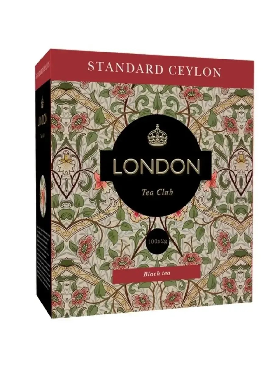 London Tea Club, Чай Черный "Standad Ceylon",100 пакетиков по 2 гр. Лондон Стандарт Цейлон хорошо известен своим качеством. Этот чай славится своим ароматом и насыщенным, крепким, терпким вкусом. Отлично сочетается с молоком или лимоном. Способ применения: Заварить крутым кипятком чайные пакетики из расчета 1 пакетик на 1 порцию напитка. Выдержать 2-3 минуты. Желательно использовать фильтрованную воду. Черный байховый чай изготовляют с помощью подвяливания, после этого листочки подвергают ферментации, досушивают их и сортируют. Он очень полезен для здоровья, так как содержит минералы (калий, магний, кальций, фосфор), которые необходимы организму. Это самый употребляемый байховый чай. Готовый напиток должен иметь темно-коричневый цвет.
