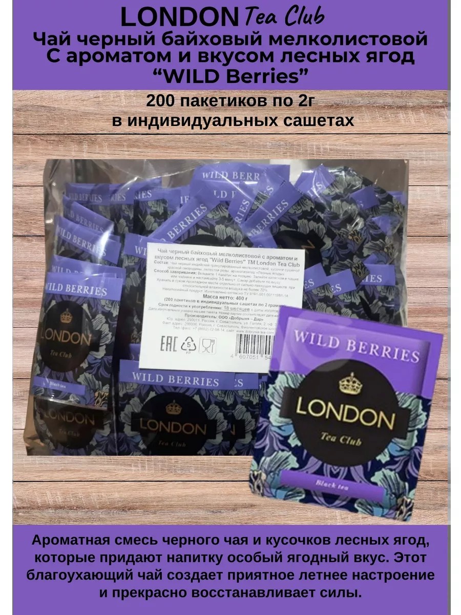 London tea club Чай черный Лесные ягоды 200 саше по 2г
