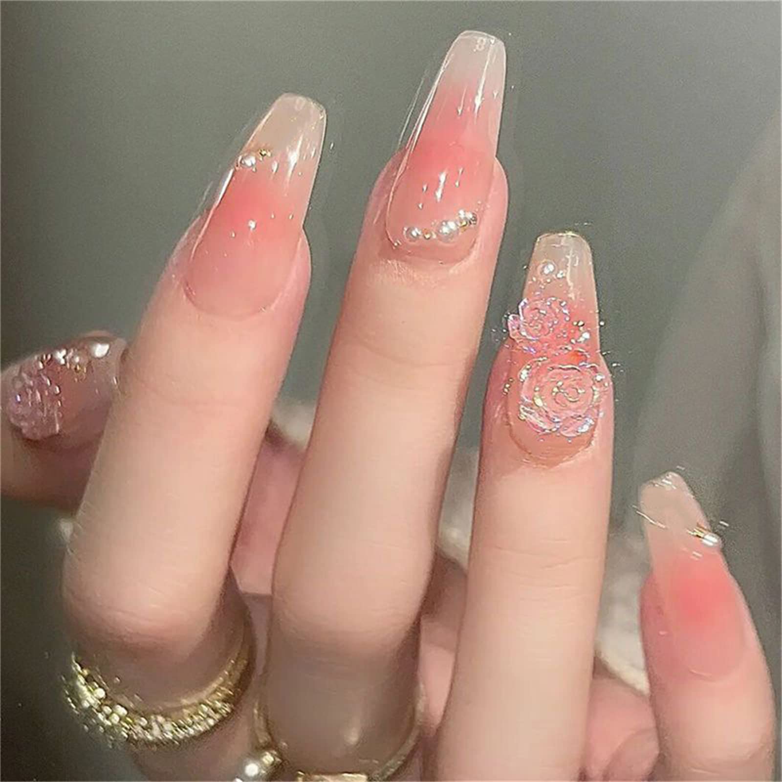 Product Information Type: False nails Press on nails Stick on nails Nail Tips 100 new and high quality Color: Multicolored Material: ABS Plastic Package Included: 24pcs False Nails with glue Feature: Full cover Glue included Pre-Designed Durable Detachable 1. This false nails press on nails are easy to file, paint and apply. It looks natural and nice holding the color without separating or streaking, making your tips magical and stylish. 2. Easy to Use According to your option to wear them long or clip them short, easy to trim and file them to any length and shape you like. Mutiple application: The false nails are great for learners at all stages,suitable for nail salons and diy nail art at home,easy to remove,which are wonderful gifts for your wife,girlfriend,mother or sisters,as well as they are great fro parties,weddings,costume ball,Halloween,Christmas,etc. Note: the nail pieces is measured by hand in kind,maybe have a little gap,hope for understanding! If there is any confuse,please don't hesitate to contact us anytime. Technical DetailsAdditional Information Feedback Long Fake Nail Full Cover with Glue Detachable Blush Pink Flowers Press on Nails 24 Pieces Finger Nail Art Tips for Nail Salons and Women DIY Nail ArtShare:Mutiple application:the false nails are great for learners at all stages,suitable for nail salons and diy nail art at home,easy to remove,which are wonderful gifts for your wife,girlfriend,mother or sisters,as well as they are great fro parties,weddings,costume ball,Halloween,Christmas,etc. Simple operation:this kind of full cover nails are easy to trim,apply,unfading color without separating or streaking.Beautiful decoration could make the nails more natural. High quality:a safe and non-toxic material with no strange smell,durable to use and comfortable on your fingers. French design: this false nails with great designed ,the average square end design makes your nails more elegant and charming. Various sizes: 24 pieces pre-desinged long nails in 12 sizes to choose from,each size have 2 pieces, suitable size that fits most prople?s fingers.