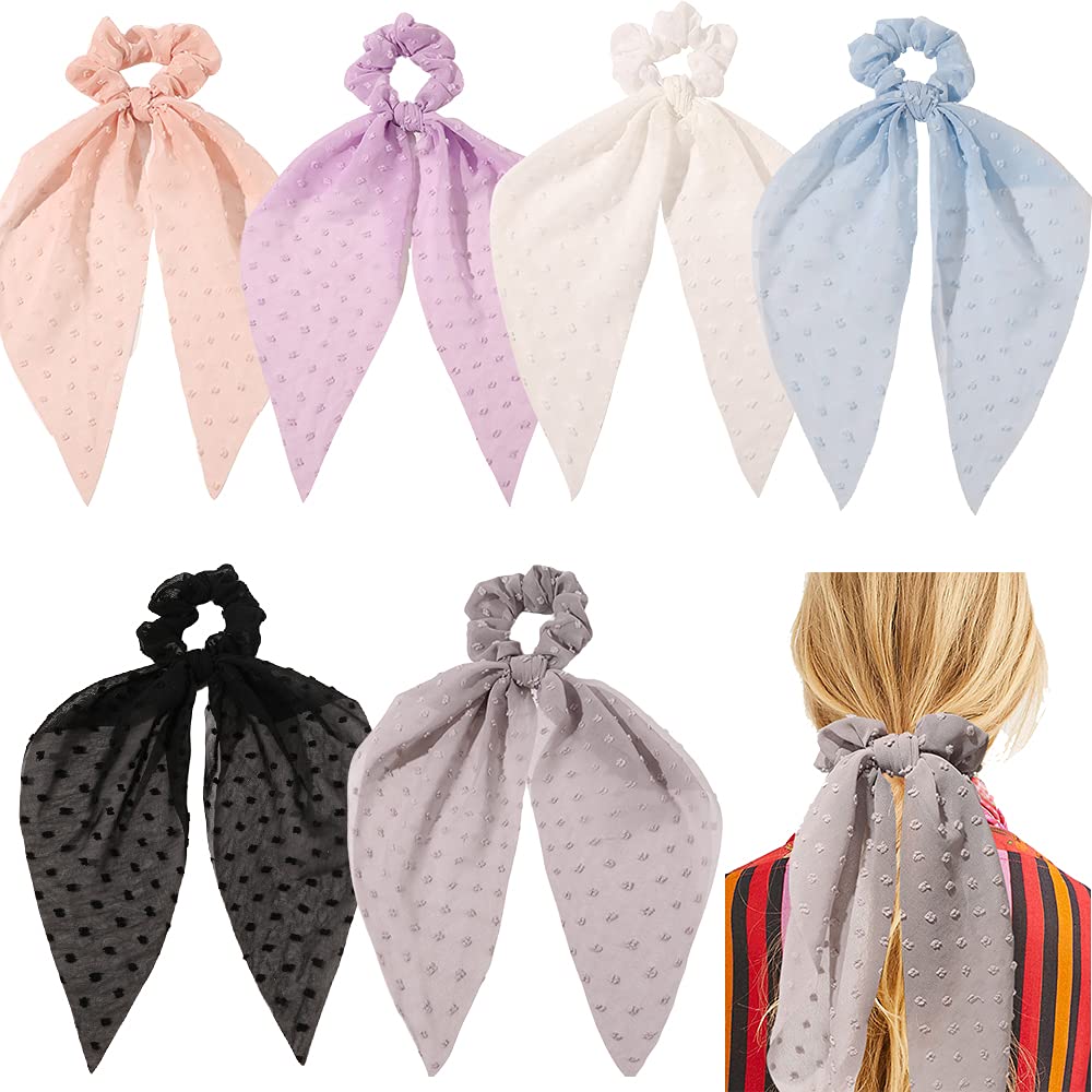 Long Hair Scarf Scrunchies Satin Silk Hair Ribbon Bow Scrunchies for Women Girls Black Bowknot Hair Ties Bands 6Pcs Elastics Ponytail Holder (6 Pcs Donut Hair Ties)