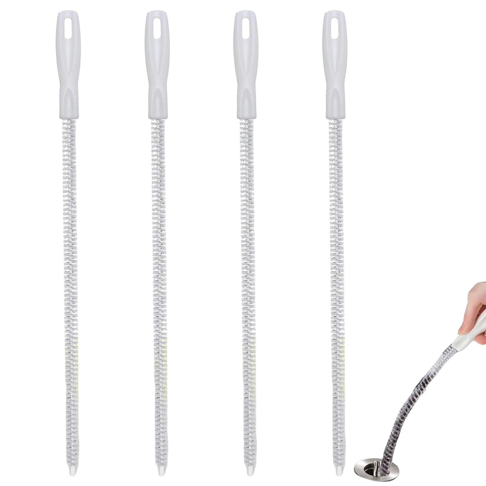 Long-handled Cleaning Brush - 4 Sink Hair Cleaning Brush Extra-long Drain Brush | Hangable Bendable 17.7 Inches Pipe Cleaner Brush For Toilet Clogged Drains (White)