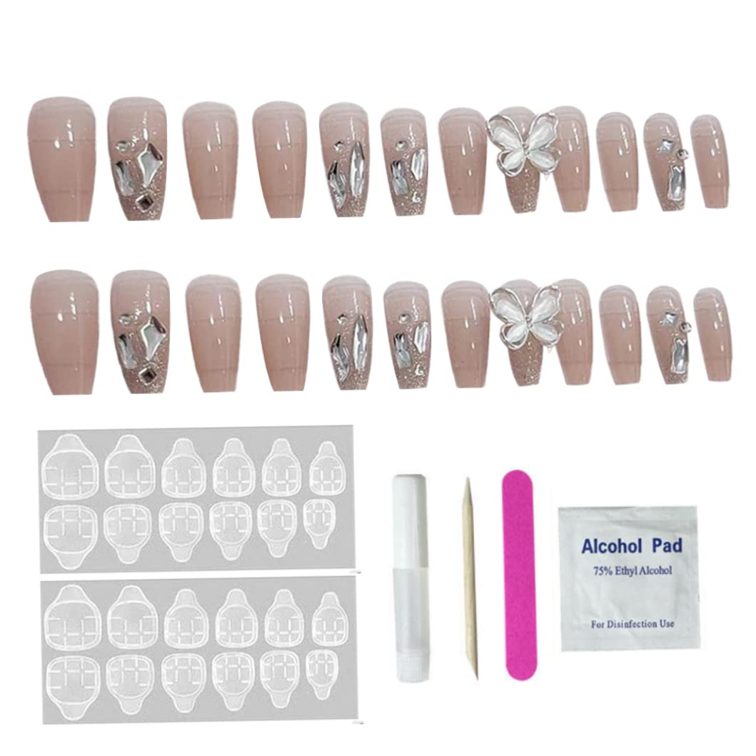 Description: The exquisite 3D Butterfly Designs and Rhinestones that add the perfect amount of sparkle to your fingertips. These beautiful fake nails are perfect for women who love to make a statement with their nails. Made of quality ABS material, these long press on nails are non-toxic, have a suitable thickness and provide full coverage, ensuring that your natural nails are not visible through the surface of the press-on nails. They are also sturdy and durable, making them ideal for everyday wear, parties, and special occasions. These beautiful press-on nails are perfect for all kinds of social occasions, such as parties, proms, weddings, and even for everyday use. Features:. Long Press on Nails. -Color: pinky and white. -Material: ABS. -Size: about 0.8-1.4 cm/0.31-0.55 inch., length:1.9x2.7 cm/0.75x1.06 inch. Note: Manual measurement, please allow slight errors on size. The colors may exist slight difference due to different screens. Package Including 24* Jelly glue stickers,1* glue,1* nail remover stick,1* acohol pad,1* nail file,1 box of 24 false nailsDurable & Sturdy: These long false nails are made of quality ABS material, which is durable and safe to use. These long false nails will not harm your nails or body. With moderate thickness, they are durable and resistant to breakage, making them a reliable choice for long-lasting wear. DIY Package: Our package includes 24 pieces of false nails in various sizes,1 mini nail file,1 small wooden stick,a acohol pad,1 nail glue and 24 nail glue stickers. You can easily choose a fake nail that fits your finger size and shape it to your desired styles for a personalized look.These fake nails are simple to trim and can be applied in just 5 minutes. With a few easy steps, you can achieve a salon-quality manicure from the comfort of your home. Long-Lasting Effect: Our package comes with 24 pcs nail glue sticker that allows for reuse of the fake nails. These fake nails can last for 1-2 weeks. Press on french fake nails is a perfect gift for girlfriend, wife, friends. Wide Application: These nails are ideal for dance parties, weekend trips, weddings, parties, Christmas, Halloween, dates, proms, and weddings, Valentine's Day and Christmas. They make a thoughtful and beautiful gift for women and girls of all ages. Exquisite Design: Transform your nails with these stunning Square Press on Nails. These acrylic nails features with exquisite 3D Butterfly Designs and rhinestones that add the perfect amount of sparkle to your fingertips. These beautiful fake nails are perfect for women who love nail arts.