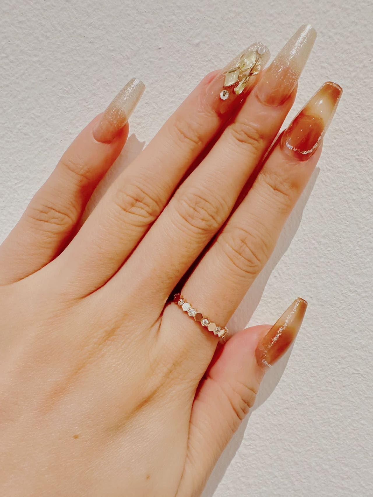 How to Apply Press-on Nails? 1. Prep your nails: Before applying press-onnails, ensure that your natural nails are clean, dry, and free from any oils.Trim and shape your nails to your desired length and gently push back thecuticles for a neat appearance. 2. Select the right size: Choose press-on nailsthat closely match the size and shape of your natural nails. If needed, filethe sides of the press-on nails to achieve a perfect fit. 3. Use sticky tabs: Apply sticky tabs to the backof the press-on nail. 4. Start from the cuticle: Begin applying thepress-on nail from the cuticle area and gently press it down onto your naturalnail. Ensure that the nail is aligned properly and firmly adhered, without anyair bubbles or creases. 5. Press and hold: Press down firmly on thepress-on nail for a few seconds to allow the adhesive to bond effectively. Applyeven pressure across the entire surface of the nail to ensure a secureattachment. 6. Trim and shape: Use nail clippers or a nailfile to trim and shape the press-on nails to your desired length and style. Thiswill help create a natural and polished look. 7. Practiceand adjust: If you're new to applying press-on nails, don't worry if it takes afew tries to get it right. Practice makes perfect, and you'll become moreskilled and efficient with time. How to Remove Press-on Nails? 1. Soak nails in warm soapy water for a fewminutes. 2. Use a hard object, such as a cuticle pusher,to slowly and gently separate the faux nails from your natural nails. 3. Ifneeded, gently buff any glue residue from nails 4. Apply cuticle oil to nails to rehydrateskin & maintain healthy nails. About Press-onNails Q&A Q: What’s included in the Kit? You will receive: Instructions 20 pieces of press on nails in all differentsizes to fit your fingers. A sheet of 24 double sided stickies. A nail file to buff the surfac