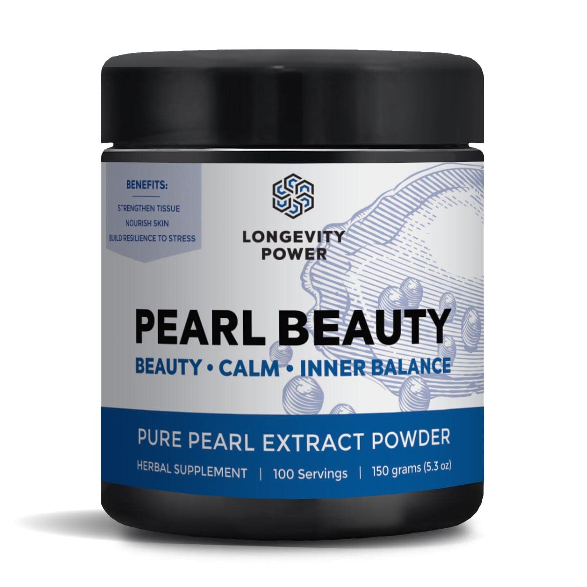 Longevity Power Pearl Beauty 10:1 Hydro-Ethanol Extract of Hydrolyzed Akoya Oyster Sea Pearl Skin Gut and Tissue Health 100 servings 150g (6.3oz)