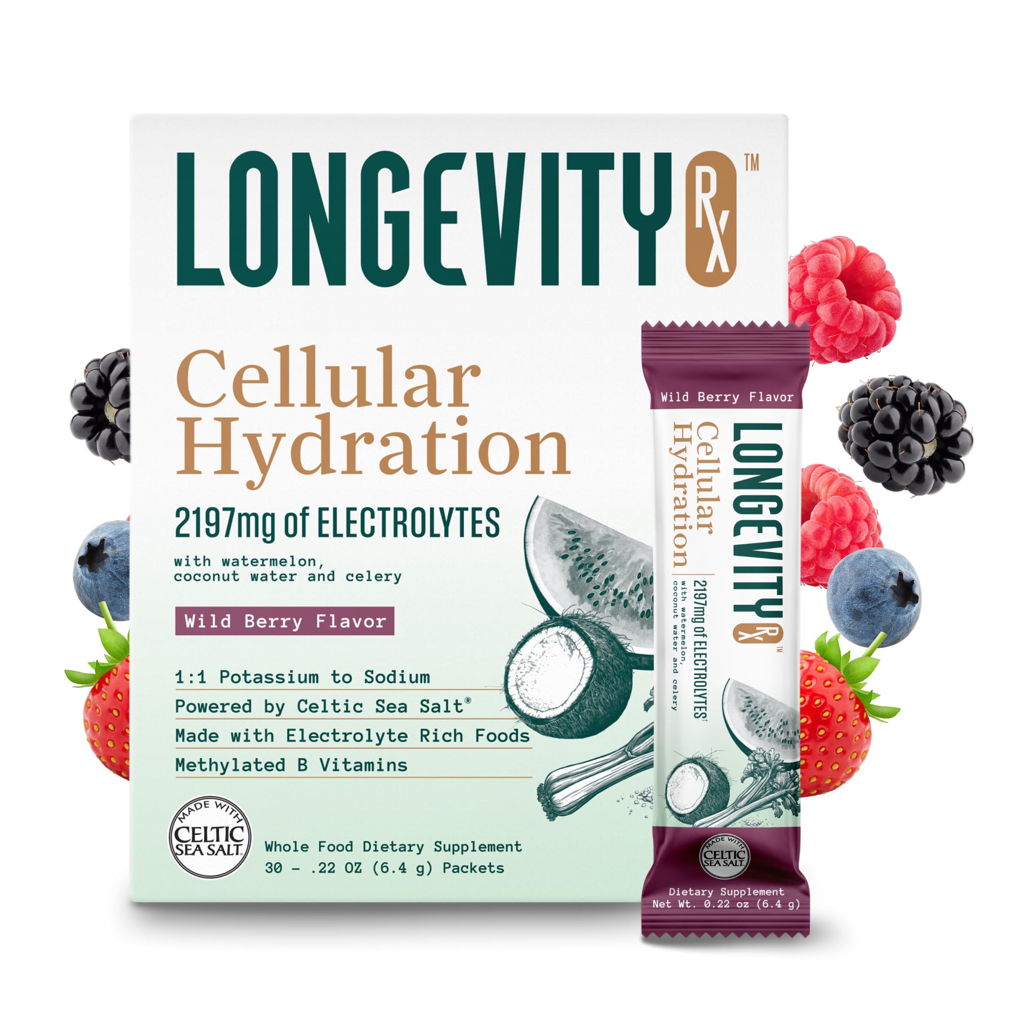 Longevity Rx Cellular Hydration Electrolyte Powder Pink Celtic Cave Salt from Spain 410mg Choline 1:1 Sodium-Potassium Ratio Superfood Hydration Blend for Energy Focus & Performance 30 Servings