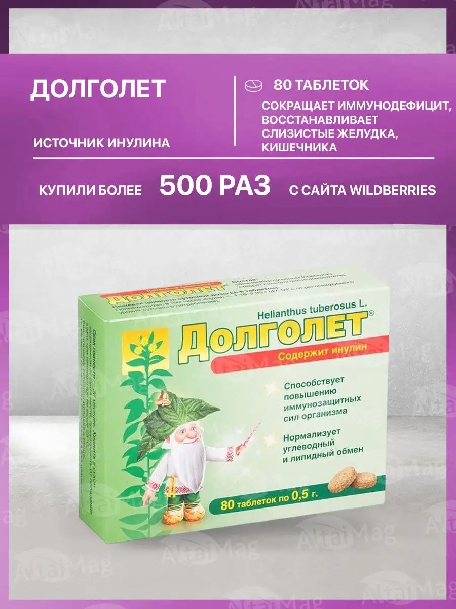 Долголет Долголет источник инулина, от болезней сердца 80 таблеток