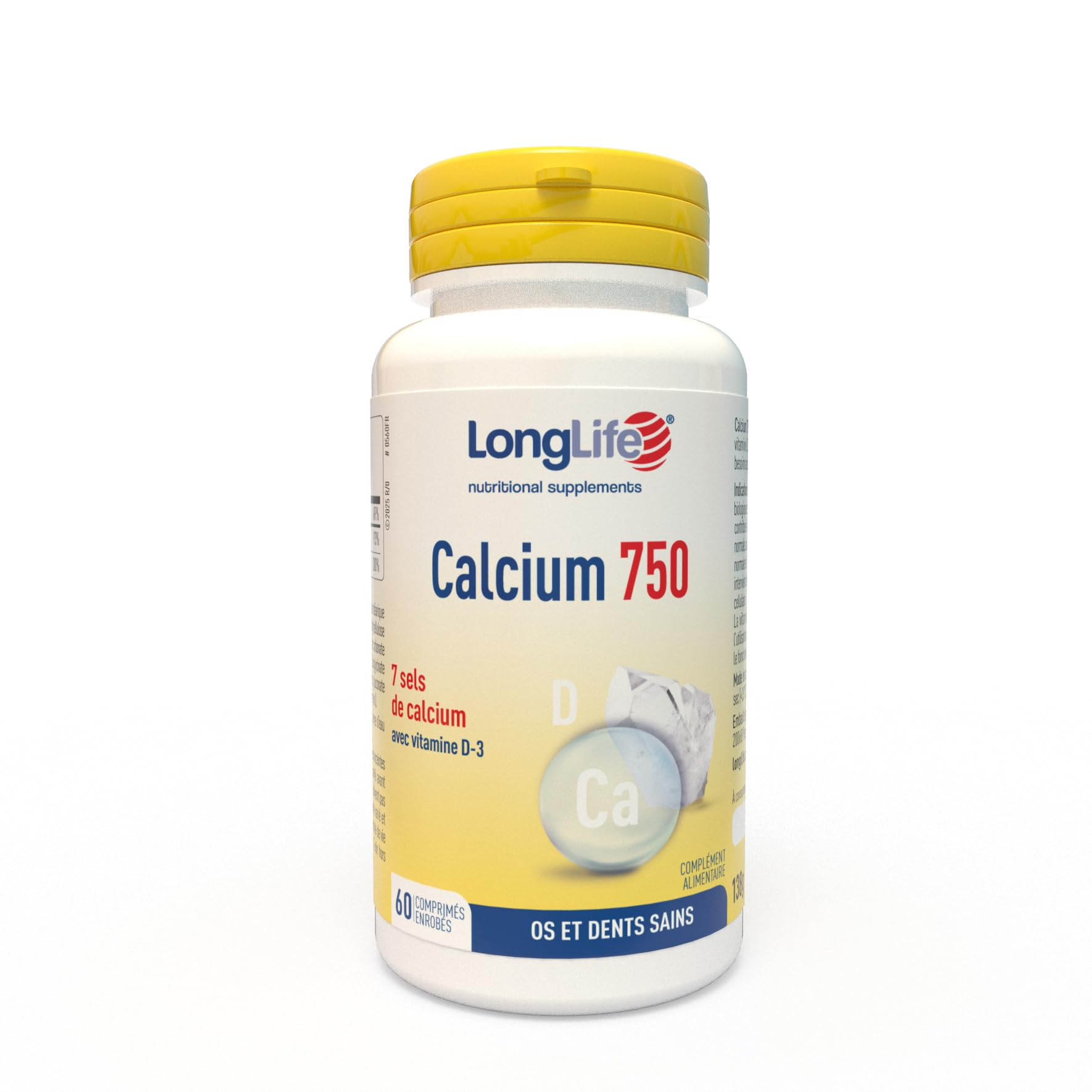 : LongLife Calcium 750 mg is a food supplement containing seven highly bioavailable calcium salts and vitamin D3. Its composition contributes to numerous beneficial functions for the body: healthy bones, teeth, and joints maintenance of muscle function and neurotransmission energy metabolism and normal immune system function. Calcium is among the most abundant minerals in the body, representing 2 of its total weight. More than 99 is found in bones and teeth, where it combines with other minerals involved in skeletal formation. Furthermore, calcium is essential for nerve function, muscle contraction, and coagulation mechanisms, as well as for regulating vascular contraction, vasodilation, intracellular signaling, and hormone secretion. For optimal calcium action, the presence of vitamin D3, a prohormone primarily involved in bone tissue, is essential as it facilitates its absorption. In general, calcium requirements vary according to age and physiological condition: essential for growth, pregnancy, and breastfeeding, it also plays a critical role in maintaining balanced bone formation after age 50. It is recommended to take one (1) tablet daily with water during a meal. LongLife Calcium 750 is suitable for vegetarians and those on a gluten-free diet. Ingredients: calcium carbonate, anti-caking agents (vegetarian stearic acid and magnesium stearate), thickener (sodium carboxymethylcellulose), coating agents (hydroxypropyl methylcellulose and calcium carbonate), coralline calcium, cholecalciferol (vitamin D-3), calcium bisglycinate, calcium L-ascorbate, calcium citrate malate, calcium gluconate, calcium succinate, strengthening agent (glycerol).SUSTAINABILITY AND SAFETY: All our food supplements are produced using energy from 100 renewable sources. The LongLife bottle, made of R-PET plastic, is 100 recyclable and 100 post-consumer recycled, with the exception of the pigment. Each package is protected by triple-action technology: a seal to isolate against external agents, a tamper-evident cap, and a protective film against dust and moisture. VEGETARIAN AND EASY TO SWALLOW: LongLife Calcium 750 mg, in 22 mm coated tablets, is easy to swallow. Thanks to its formulation, it is suitable for vegetarian and gluten-free diets. It is recommended to take one coated tablet daily with a meal. HEALTHY AND STRONG BONES AND TEETH: This LongLife product contributes to the maintenance of bone and teeth mineralization, joint and cartilage health, and the support of the musculoskeletal and nervous systems. Furthermore, it supports the immune system and energy metabolism. 7 CALCIUM SALTS AND VITAMIN D3: LongLife Calcium 750 mg is a supplement containing 7 different calcium salts: carbonate, coralline, bisglycinate, L-ascorbate, citrate malate, gluconate, and succinate. The beneficial action of these highly bioavailable mineral salts is enhanced by the presence of naturally sourced cholecalciferol (vitamin D3). ITALIAN QUALITY: LongLife is the leading Italian company in the production of very high-quality food supplements. Its food safety management system, based on the HACCP method, is certified according to extremely rigorous international standards such as Good Manufacturing Practice (US FDA) and Food Safety System Certification 22000. Our products are also certified Play Sure Doping Free.Description du produit LongLife Calcium 750 mg est un complément alimentaire contenant 7 sels de calcium à haute biodisponibilité et de la vitamine D3. Sa composition contribue à de nombreuses fonctions bénéfiques pour l'organisme : bien-être des os, des dents et des articulations, maintien de la fonction musculaire et de la neurotransmission, métabolisme énergétique, fonction normale du système immunitaire. Parmi les minéraux les plus abondants dans l'organisme, il représente 2 de son poids total. Plus de 99 est présent dans les os et les dents, où il s'associe aux autres minéraux participant à la construction du squelette. De plus, le calcium est indispensable au fonctionnement des nerfs, à la contraction musculaire et aux mécanismes de coagulation, ainsi qu'à la régulation de la contraction vasculaire, de la vasodilatation, des signaux intracellulaires et de la sécrétion hormonale. Pour une action optimale du calcium, la présence de la vitamine D3, pro-hormone principalement impliquée dans les tissus osseux, est indispensable car elle facilite son absorption. En général, les besoins en calcium varient en fonction de l'âge et de la condition physiologique : indispensable pour la croissance, la grossesse et l'allaitement, il joue également un rôle critique dans le maintien de l'équilibre de la formation osseuse après 50 ans. Il est recommandé de prendre un (1) comprimé par jour avec de l'eau pendant le repas. Le produit LongLife Calcium 750 convient à une alimentation végétarienne et sans gluten. Ingrédients carbonate de calcium, antiagglomérants (acide stéarique et stéarate de magnésium végétal), épaississant (carboxyméthylcellulose de sodium), agents d'enrobage (hydroxypropyl méthylcellulose et carbonate de calcium), calcium corallien, cholécalciférol (vitamine D-3), bisglycinate de calcium, L-ascorbate de calcium, citrate malate de calcium, gluconate de calcium, succinate de calcium, agent de résistance (glycérol).DURABILITÉ ET SÉCURITÉ : Tous nos compléments alimentaires sont produits en utilisant de l'énergie provenant de sources 100 renouvelables. Le flacon LongLife en plastique R-PET est 100 recyclable et 100 recyclé post-consommation, à l'exception du pigment. Chaque emballage est protégé par une technologie triple action : un sceau pour isoler des agents extérieurs, un bouchon inviolable et un film protecteur contre la poussière et l'humidité. VÉGÉTARIEN ET FACILE À AVALER : Calcium 750 mg de LongLife, en comprimés enrobés de 22 mm, est facile à avaler. Grâce à sa formulation, convient à une alimentation végétarienne et sans gluten. Il est c