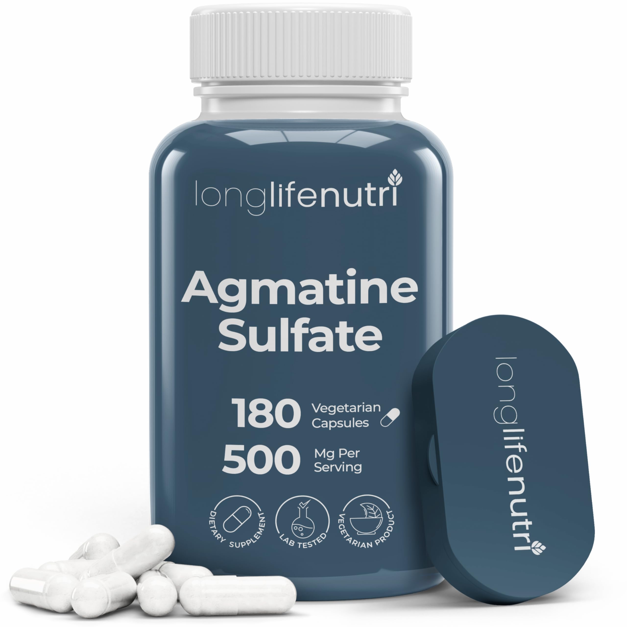LongLifeNutri Agmatine Sulfate 500 mg 180 Vegetarian Capsules (6-Month Supply) Dietary Supplement Made in USA 180 Count (Pack of 1)