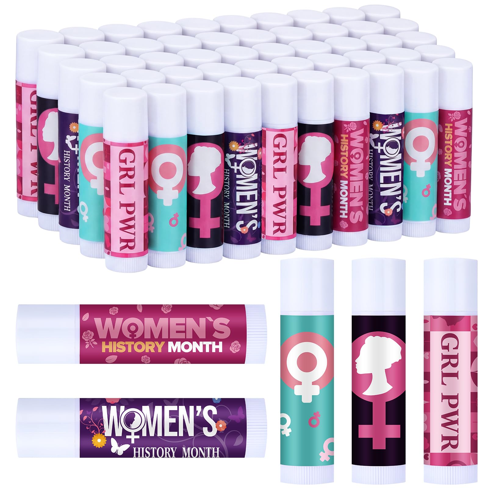Features: Applicable for Various Occasions: Lip balm gift set is suitable for different occasions, such as Women's History Month party, birthday party, family gathering, stocking stuffers, gift baskets, home, office, travel, shopping and other activities Portable and Lightweight: Each lip balm is individually wrapped, so you can carry it with you and use it anytime, anywhere. Whether it is daily use or going out, it can be easily put into a pocket or handbag, providing you with convenience Specifications: Material: beeswax Color: as shown in the figure Size: as shown in the figure Package includes: 50 x Lip Balms Notes: Manual measurement, please allow slight errors on size. The color may exist a slight difference due to different screen displaysIdeal Gift: suitable for Women's History Month events, feminist themed seminars, school education projects, workplace women's events, church events, gift bag filling, classroom rewards, or party gifts: large packaging quantities are suitable for schools, communities, businesses, or non-profit organizations to distribute during the March Women's History Month event Spreading gender equality concepts through practical actions. Women's History Month Party Gifts: each lipstick is created around the theme of Women's History Month, printed with "GRL PWR", "Women's History Month" and other female power words, encouraging girls and women to speak bravely and emphasizing self-confidence, independence and achievement. Assorted Flavor Smell Delightful: these flavor lip balm favors small gifts smell light smell, which are nice for thank you gifts because not many people like strong scents, these lip products smell beautiful and leaves your lips soft and hydrated. Moisturizing Formula: rich in moisturizing ingredients, with a light and non greasy texture, it nourishes the lips and is suitable for daily carrying and use Suitable for students, teachers, female office staff and other different age groups, using mild ingredients, no irritating odor, suitable for daily frequent use Event products suitable for large-scale distribution, safe and reliable. Variety of 5 Refreshing Flavors of Lip Products: you will receive 50 pcs moisturizing bulk lip balms in 5 refreshing flavors, such as honey, vanilla, mint, strawberry and lemon, 10 pieces per flavor, helping moisturize your dry cracked lips You can also share them with your friends, coworkers or family.