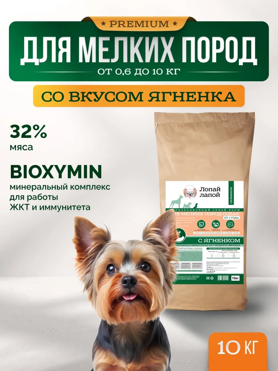 Корм для собак сухой для мелких пород Лопай Лапой специально создан для взрослых собак с чувствительным пищеварением.