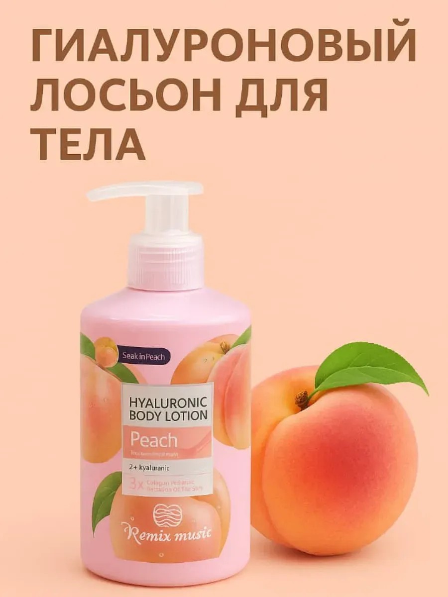 Полное наименование товараЛосьон для тела с гиалуроновой кислотой и экстрактом персика 300 мл, увлажняющий питательный крем-гель для рук и тела, антивозрастной уход против сухости, шелушения и стянутости кожи, с дозатором