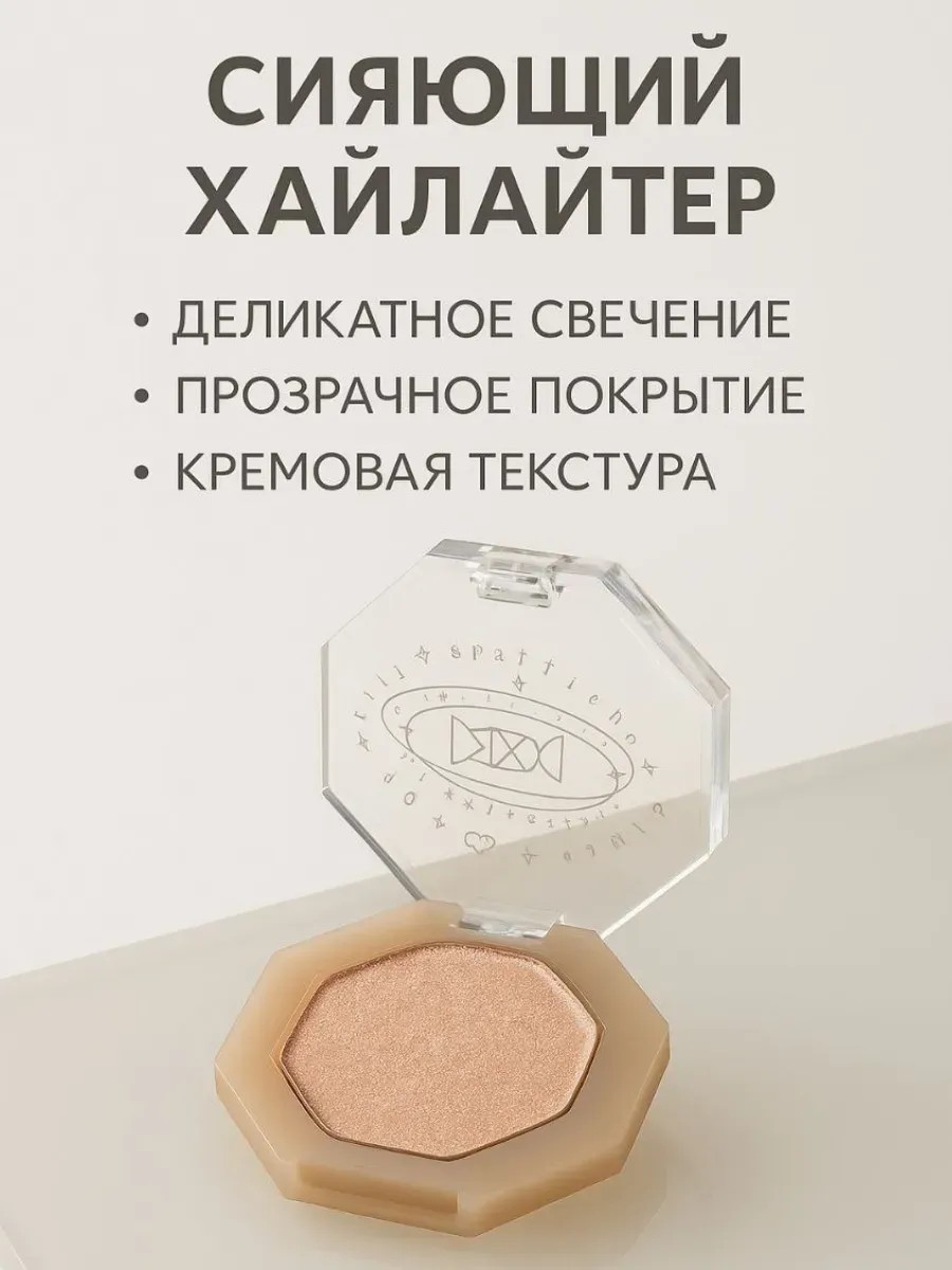 | Полное наименование товара | Хайлайтер для лица пудровый компактный — шампанский оттенок, сияющий финиш тон 1 |