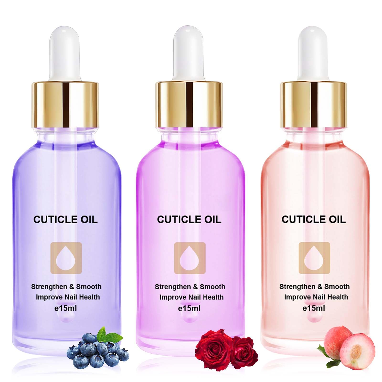 LOPHE Lot de 3 huiles pour ongles et cuticules avec compte-gouttes pour réparation et hydratation mains et pieds 15 ml Lot de 3 parfums B