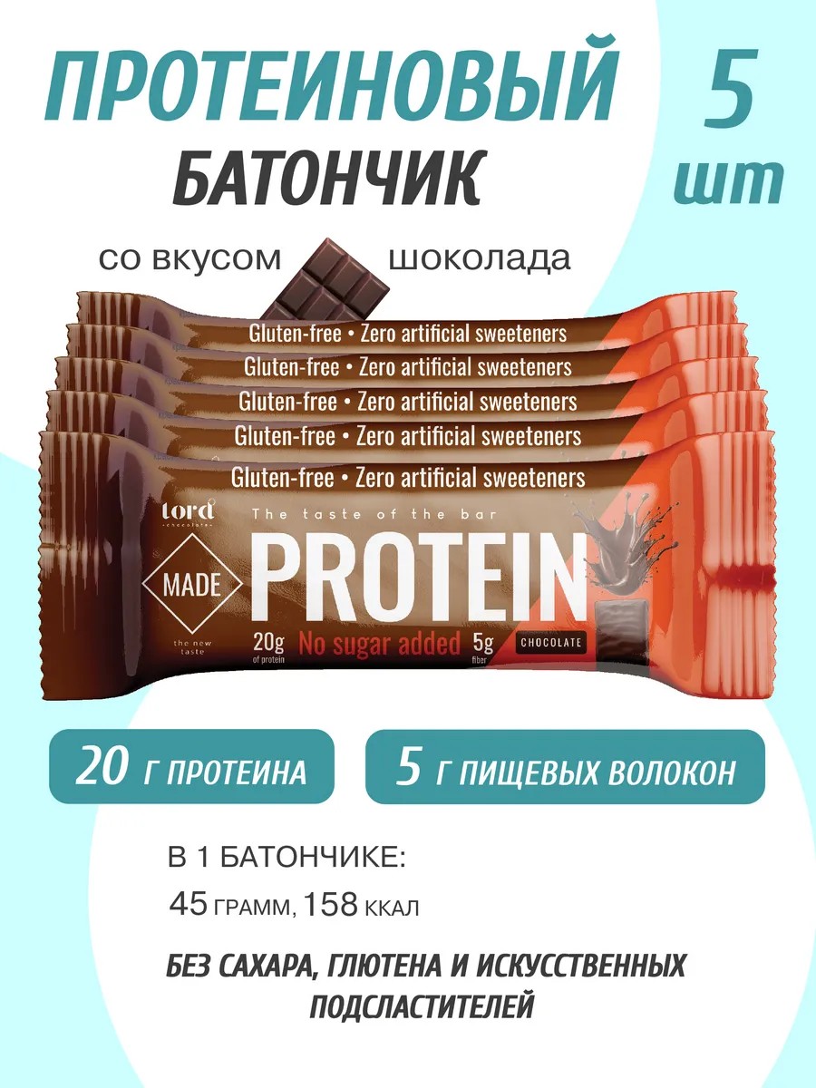 Утолите свою тягу к сладкому и заботьтесь о своей фигуре с Protein протеиновыми батончиками со вкусом шоколада! В упаковке вас ждет 5 восхитительных батончиков по 45 г, которые станут идеальным перекусом в любой ситуации. Наслаждайтесь насыщенным шоколадным вкусом, не беспокоясь о лишних калориях – эти батончики без сахара, но при этом невероятно вкусные! Каждый батончик – это заряд энергии и белка, который поможет вам оставаться активным и бодрым на протяжении всего дня. Нежный, тающий во рту шоколадный вкус, сочетается с полезными пищевыми волокнами и мальтитом, создавая идеальный баланс вкуса и пользы. Протеиновые батончики LORD_CHCO – это не просто вкусный перекус, это ваш верный помощник в достижении спортивных целей и поддержании здорового образа жизни. Удобная упаковка из 5 батончиков позволит вам всегда иметь под рукой заряд бодрости и энергии. Побалуйте себя и свой организм полезным и вкусным лакомством – Protein протеиновым батончиком со вкусом шоколада!