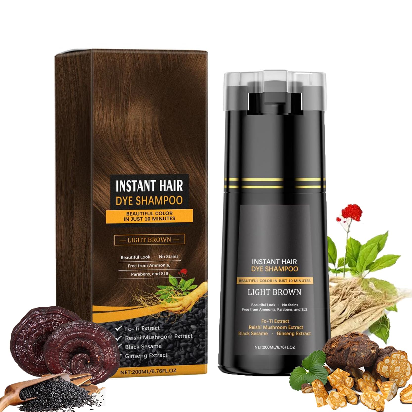 Hair Dye Shampoo, Natural Hair Dye Shampoo for White Hair, Hair Dye Shampoo, Instant Hair Dye Shampoo, Black Hair Dye Shampoo, Hair Color Shampoo, Hair Dye for Men and Women INGREDIENTS PANAX GINSENG ROOT EXTRACT DIRECTIONS FOR USE Squeeze the product into the palm of your hand like shampoo. Wear gloves. Let it sit for about 25 minutes. Rinse thoroughly with clean water until the water runs clear. SAFETY WARNING yes [Convenient] No bowl or brush needed, just squeeze it into your palm like shampoo (wear gloves). For best results, please let it sit for about 25 minutes, then rinse thoroughly with clean water until the water becomes clean. [Strengthens hair] making it strong, resilient and soft. Nourishing, your hair will be full of nutrients and have long-lasting color. [Natural] Free from irritating chemicals, pigments, hair cleansers and conditioners. Before use, please do a test. [Gentle] Contains active ingredients such as Polygonum multiflorum, Black Ganoderma, Ginger, Ginseng extract and Moroccan walnut oil. [Bright color] Natural coloring shampoo from tip to tip, restoring youthfulness to hair. Shampoing Colorant,Shampoing Colorant Naturel Cheveux Blancs,Hair Dye Shampoo,Shampooing Teinture Instantanée pour Cheveux,Shampoing Colorant Noir,Shampoing Couleur,Teinture Cheveux pour Homme Femme INGRÉDIENTS PANAX GINSENG ROOT EXTRACT MODE D'EMPLOI Presser le produit dans la paume de la main comme du shampoing. Porter des gants. Laisser reposer pendant environ 25 minutes. Rincer abondamment à l'eau claire jusqu'à ce que l'eau devienne propre. AVERTISSEMENT DE SÛRETÉ yes [Pratique] Pas besoin de bol ou de brosse, il suffit de le presser dans la paume comme du shampoing (il faut porter des gants). Pour de meilleurs résultats, veuillez le laisser reposer pendant environ 25 minutes, puis rincez abondamment à l'eau claire jusqu'à ce que l'eau devienne propre. [Renforce les cheveux] les rendant forts, résistants et doux. Nourrissant, vos cheveux seront pleins de nutriments et auront une couleur longue durée. [Naturel] Sans produits chimiques irritants, pigments, nettoyants et revitalisants capillaires. Avant utilisation, veuillez effectuer un test. [Doux] Contient des ingrédients actifs tels que le Polygonum multiflorum, le Ganoderma noir, le gingembre, l'extrait de ginseng et l'huile de noix marocaine. [Couleur vive] Shampoing colorant naturel des pointes aux pointes, redonnant de la jeunesse aux cheveux.