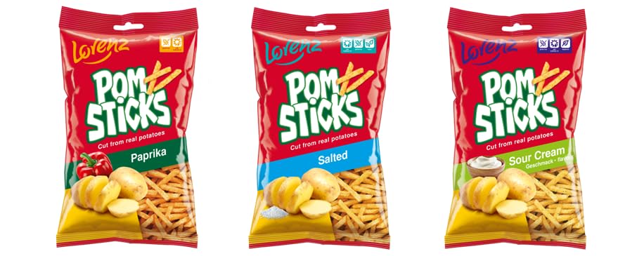 LORENZ 5-Pack Mixed Packs 85g ? LORENZ 85G Salt Vinegar Pomsticks ? LORENZ 85G Salty Pomsticks ? LORENZ 85G Sour Cream Pomsticks