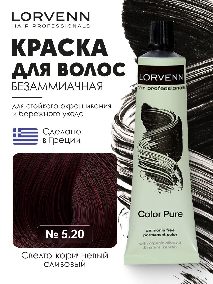 Lorvenn Краска для волос безаммиачная “Color Pure”, тон 5.20 Свелто-коричневый сливовый