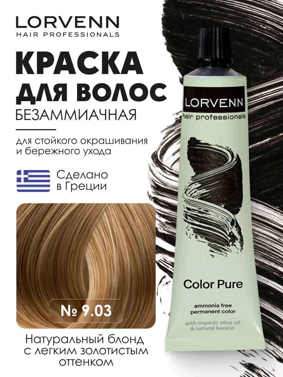 Lorvenn Краска для волос безаммиачная “Color Pure”, тон 9.03 - Натуральный блонд с легким золотистым оттенком