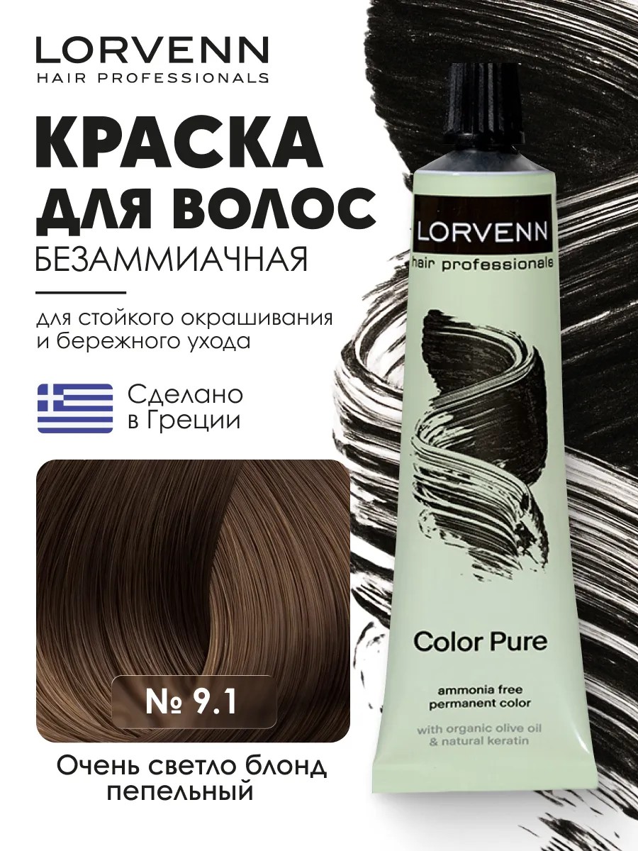 Lorvenn Краска для волос безаммиачная “Color Pure”, тон 9.1 - Очень светло блонд пепельный
