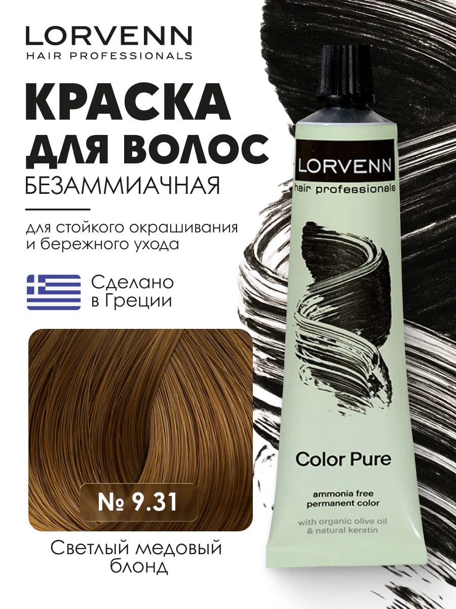 Lorvenn Краска для волос безаммиачная “Color Pure”, тон 9.31 - Светлый медовый блонд